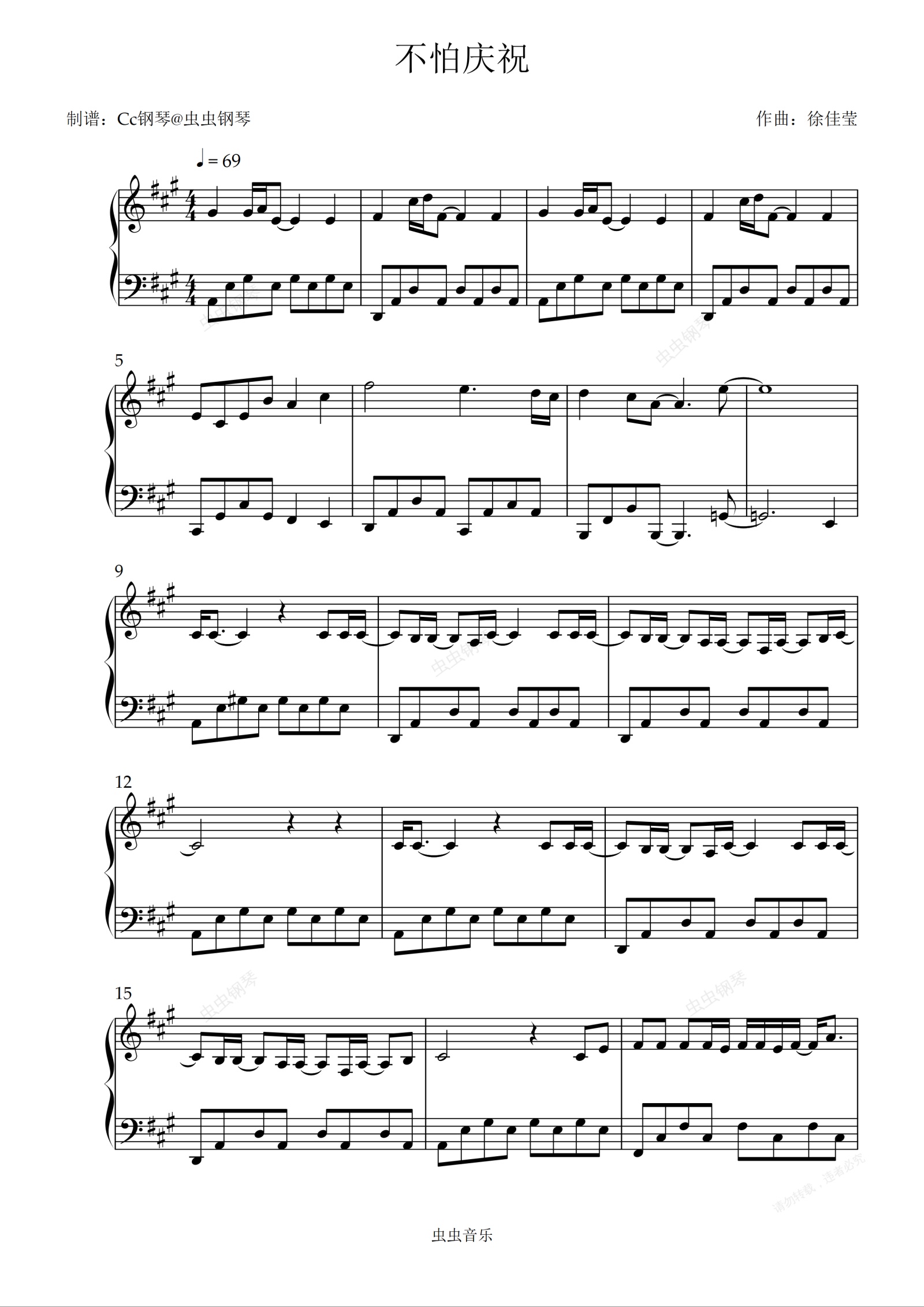 钢琴谱:不怕庆祝 原调 好听易上手