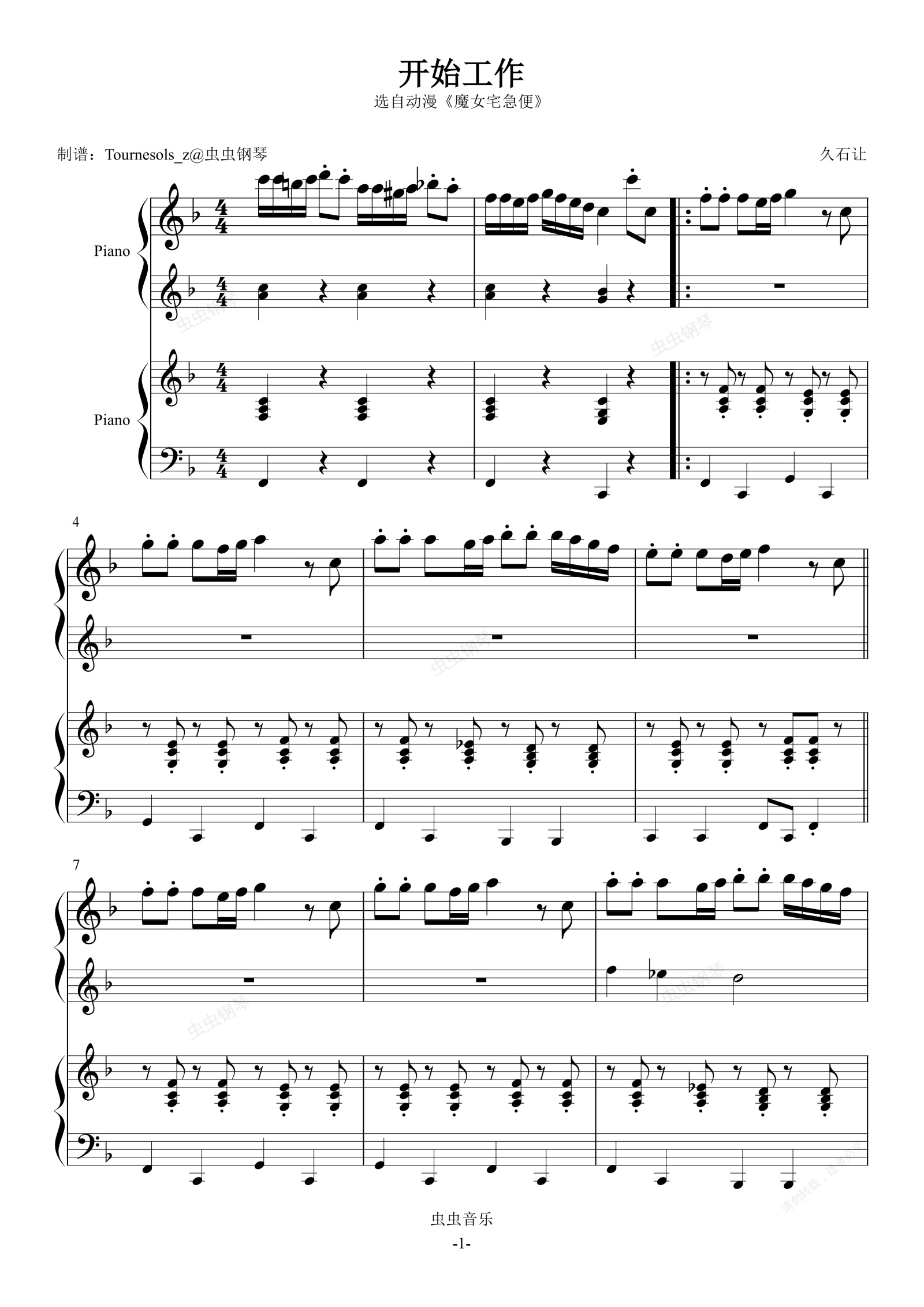 钢琴谱:开始工作(四手联弹,选自动漫《魔女宅急便》)
