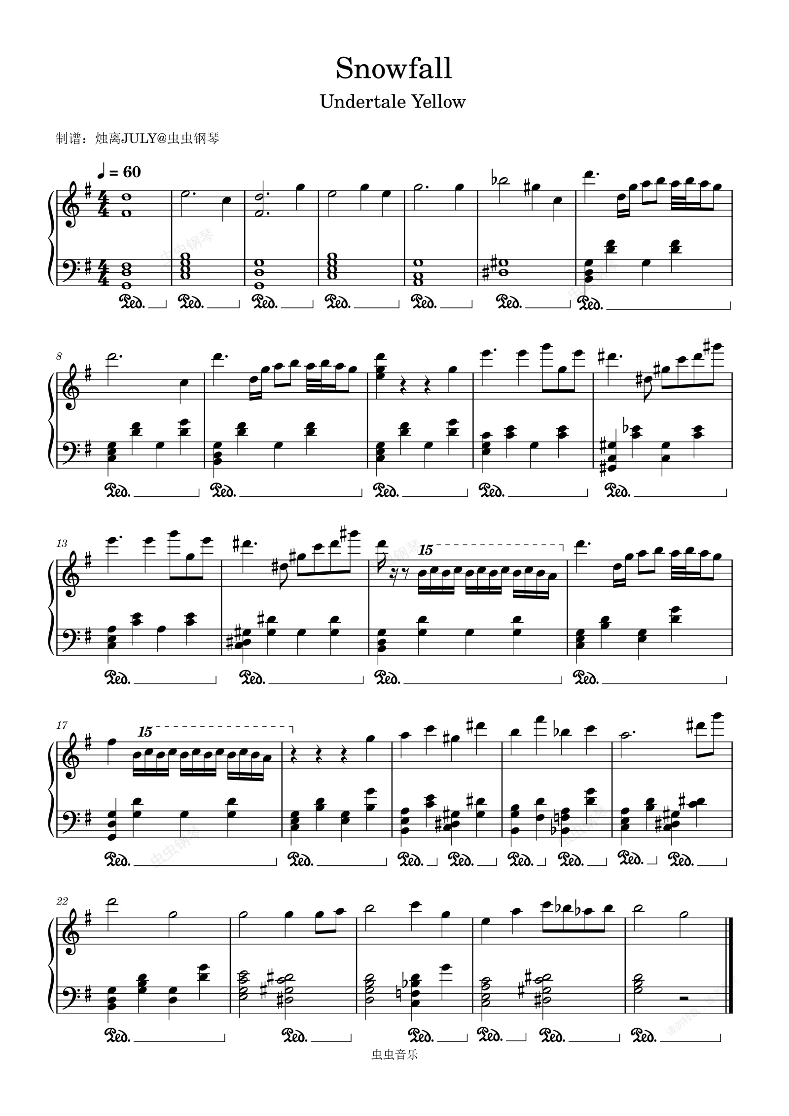 钢琴谱:Snowfall-Undertale Yellow 钢琴谱