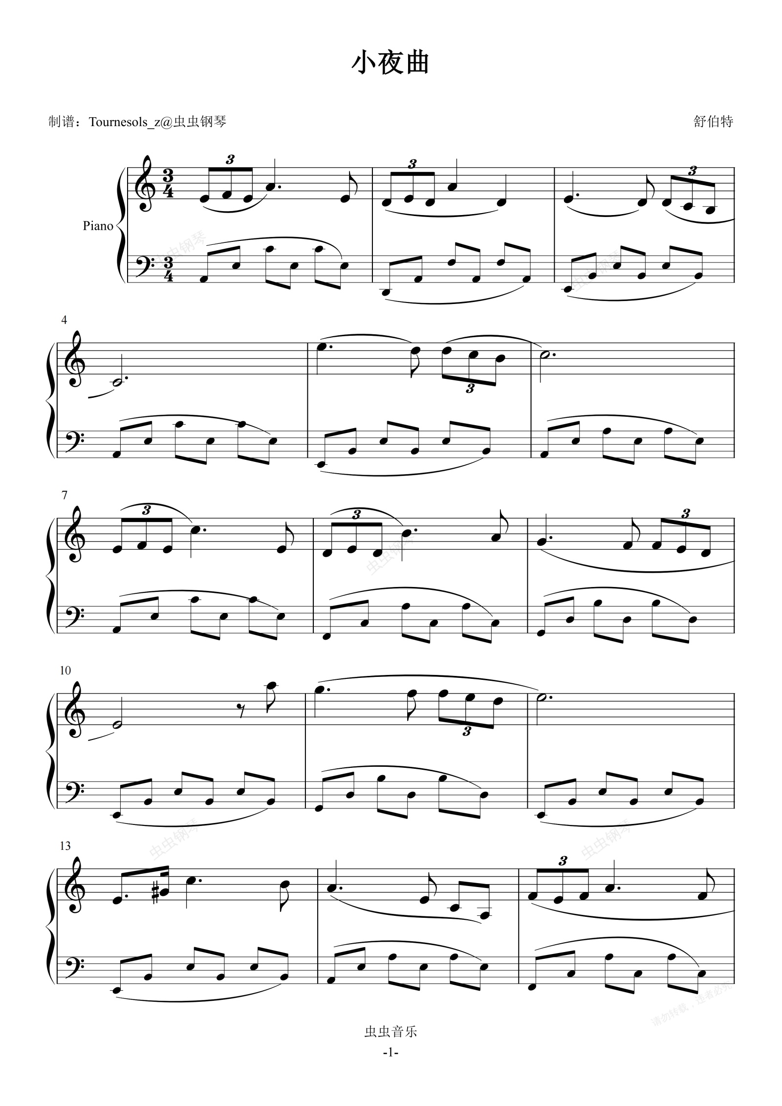 钢琴谱:小夜曲(初学简易版)
