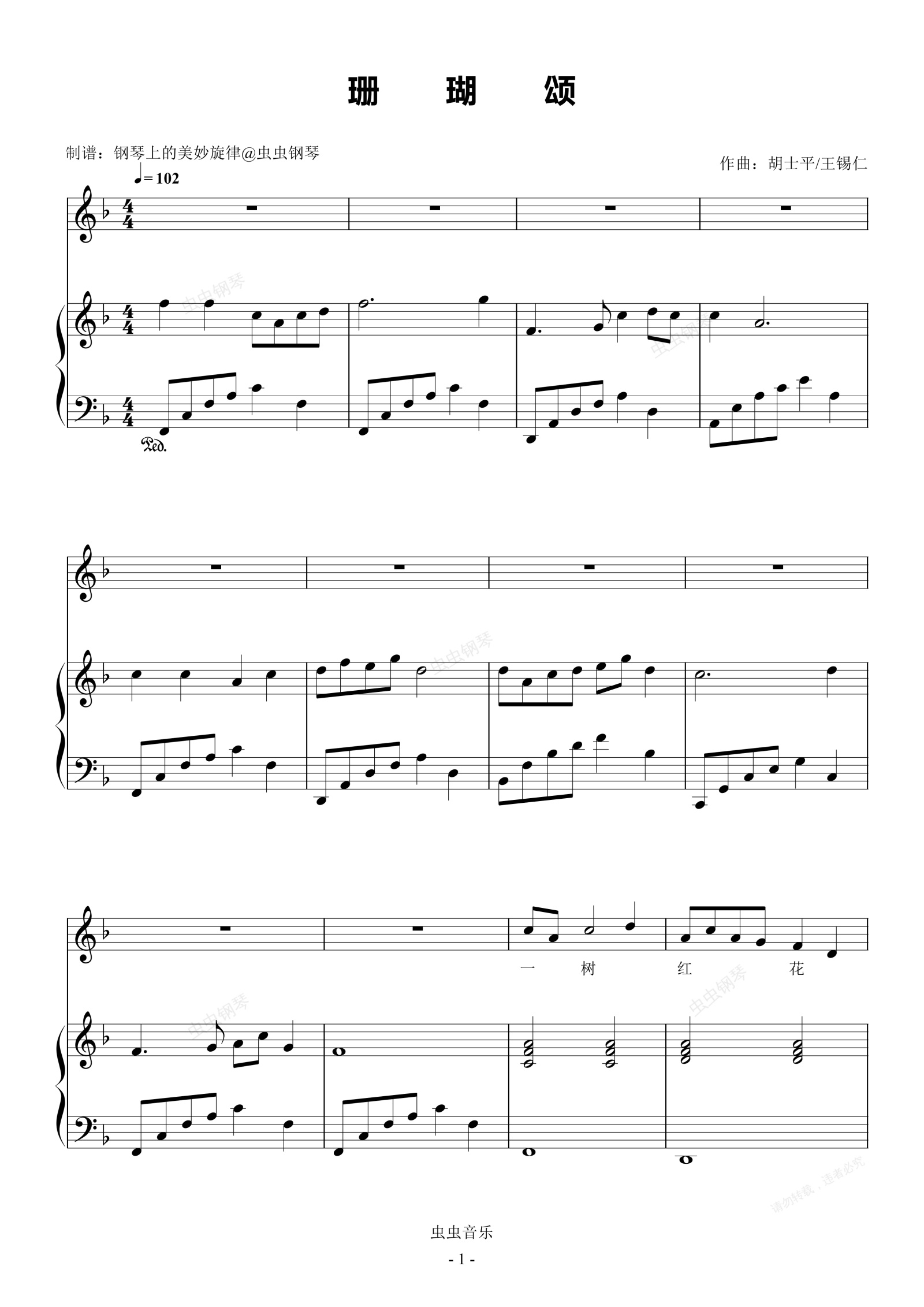 钢琴谱:珊瑚颂 简易钢琴弹唱伴奏 带歌词