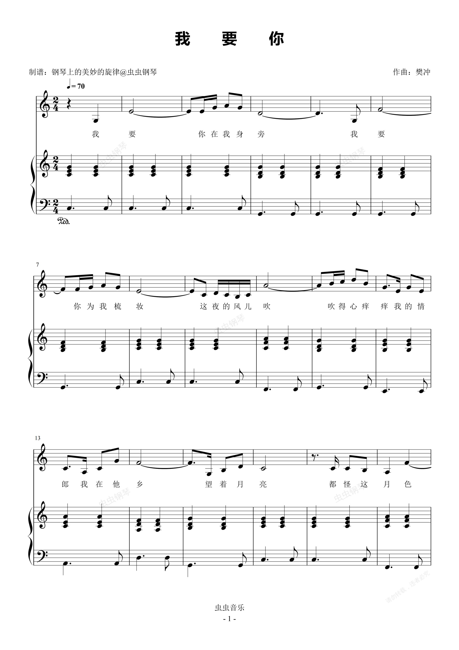钢琴谱:我要你 C调简易钢琴弹唱伴奏 带歌词 任素汐
