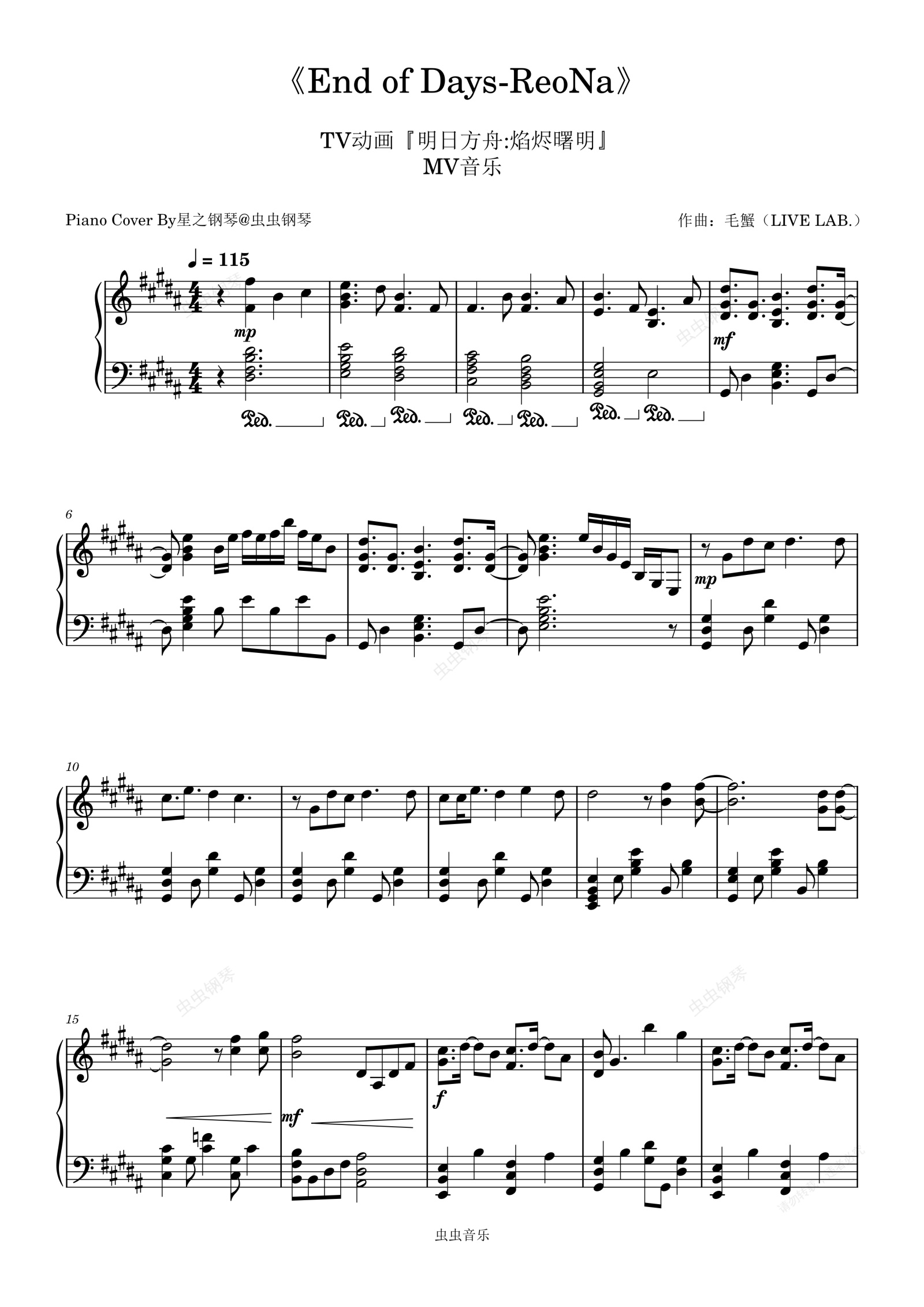 钢琴谱:【明日方舟】焰烬曙明主题曲《End of Days-ReoNa》钢琴极限还原版~星之钢琴~