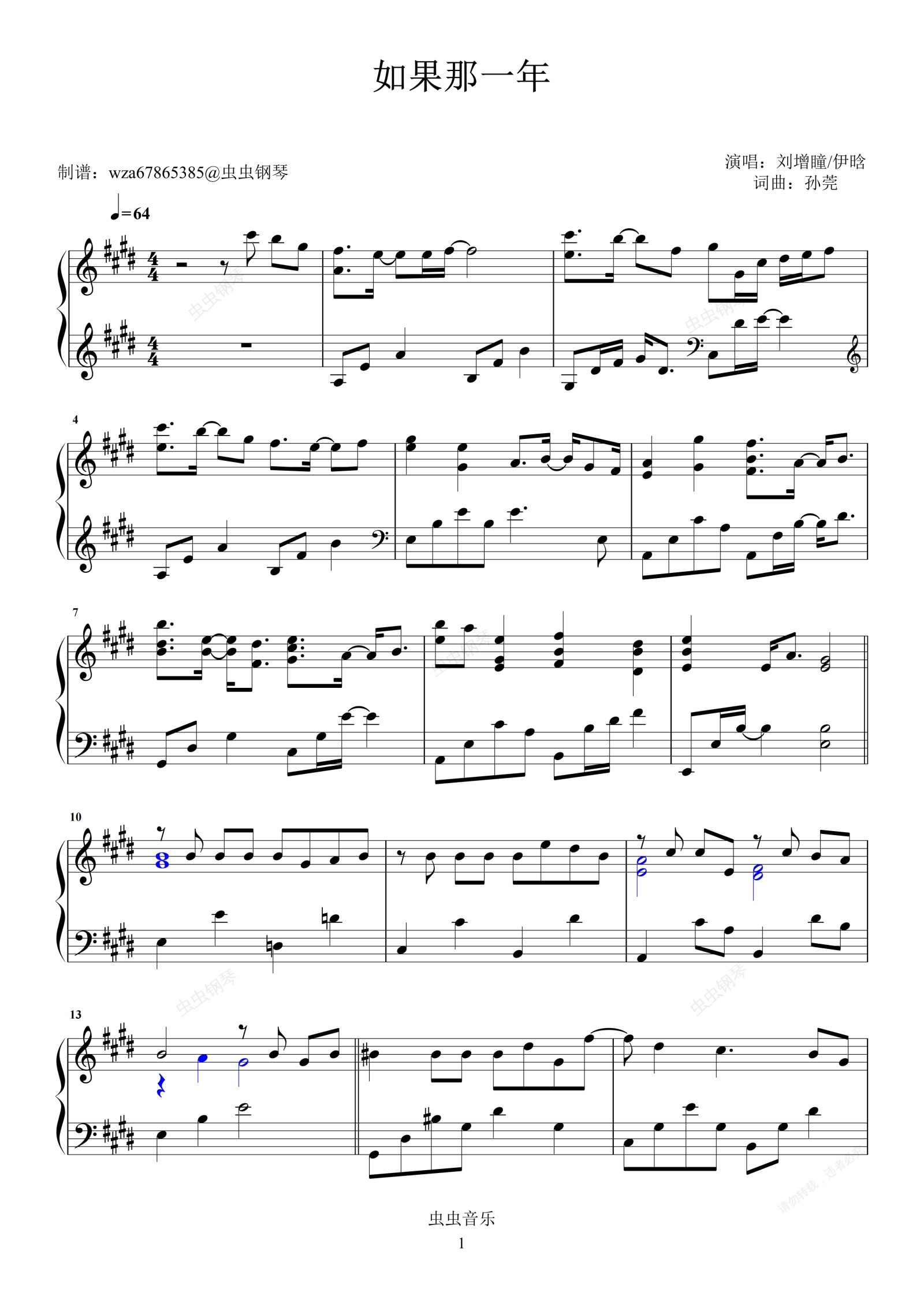 您的位置: 首页 > 钢琴谱库 > 如果那一年钢琴谱-刘增瞳