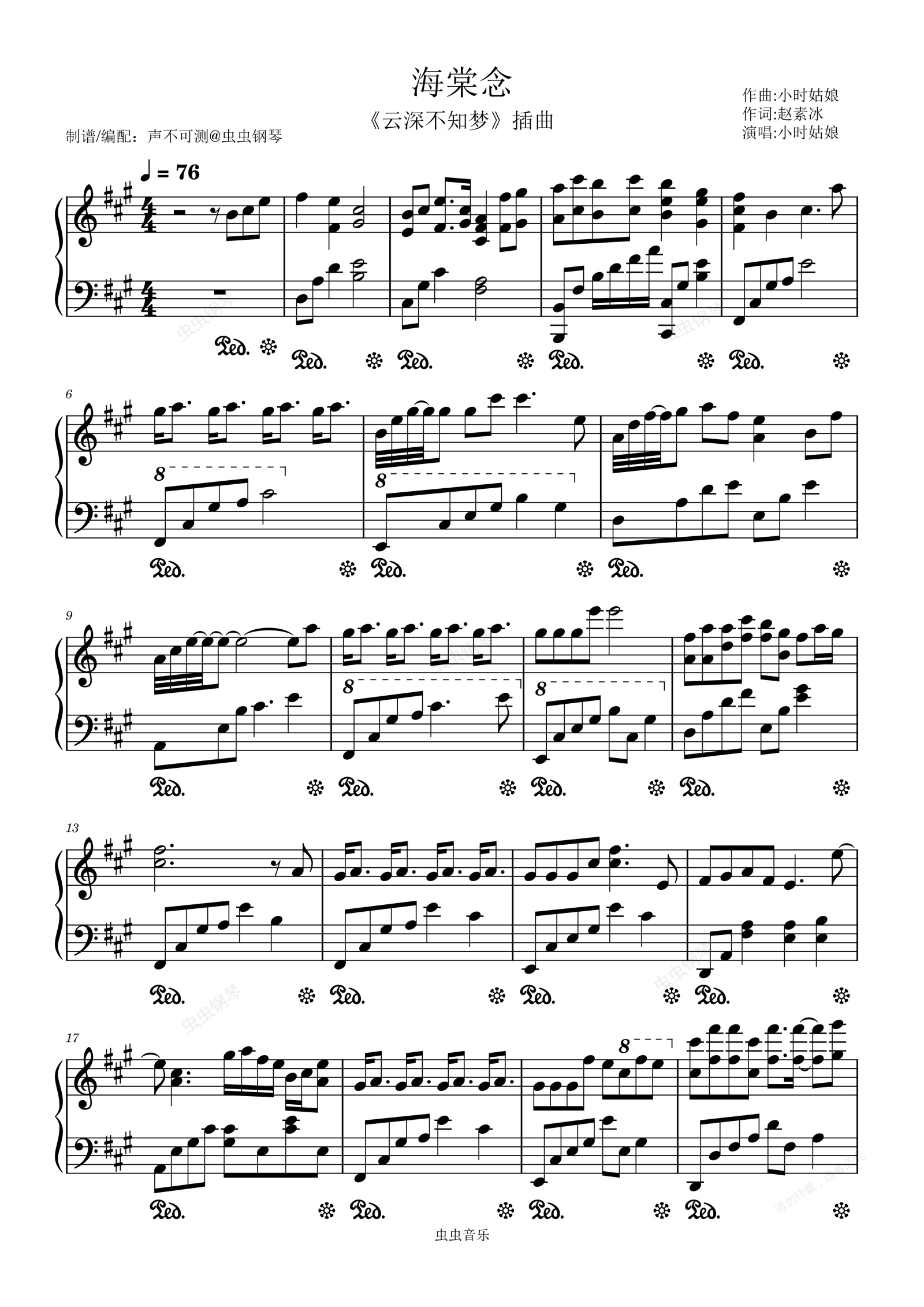 钢琴谱:海棠念《云深不知梦》插曲 - 声不可测