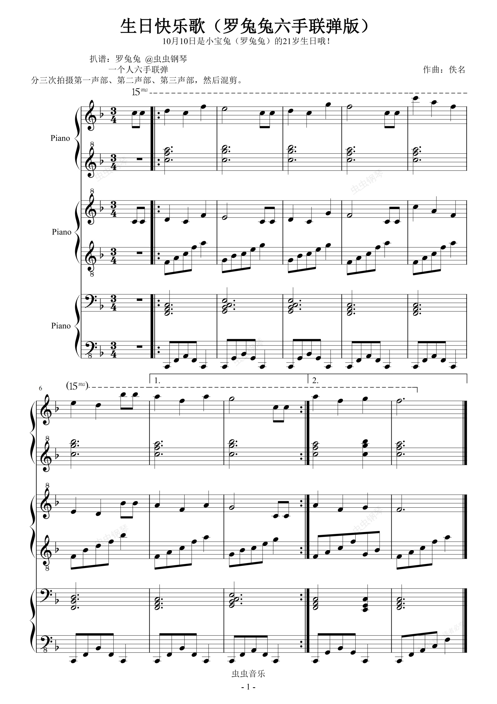生日快乐歌(罗兔兔六手联弹版)