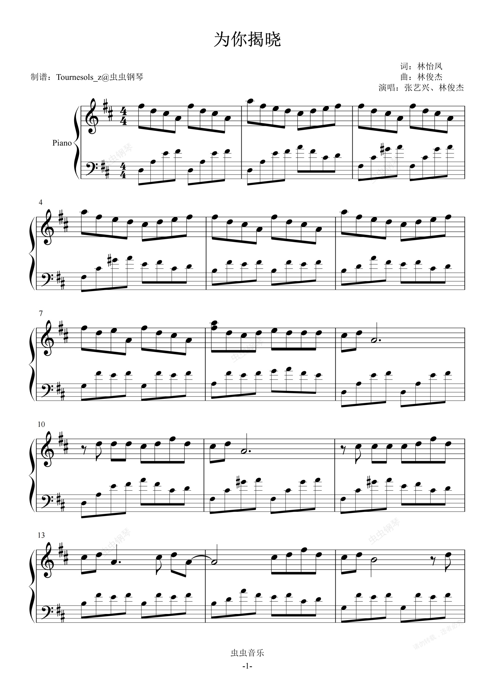 钢琴谱:为你揭晓(原调独奏,张艺兴、林俊杰演唱)