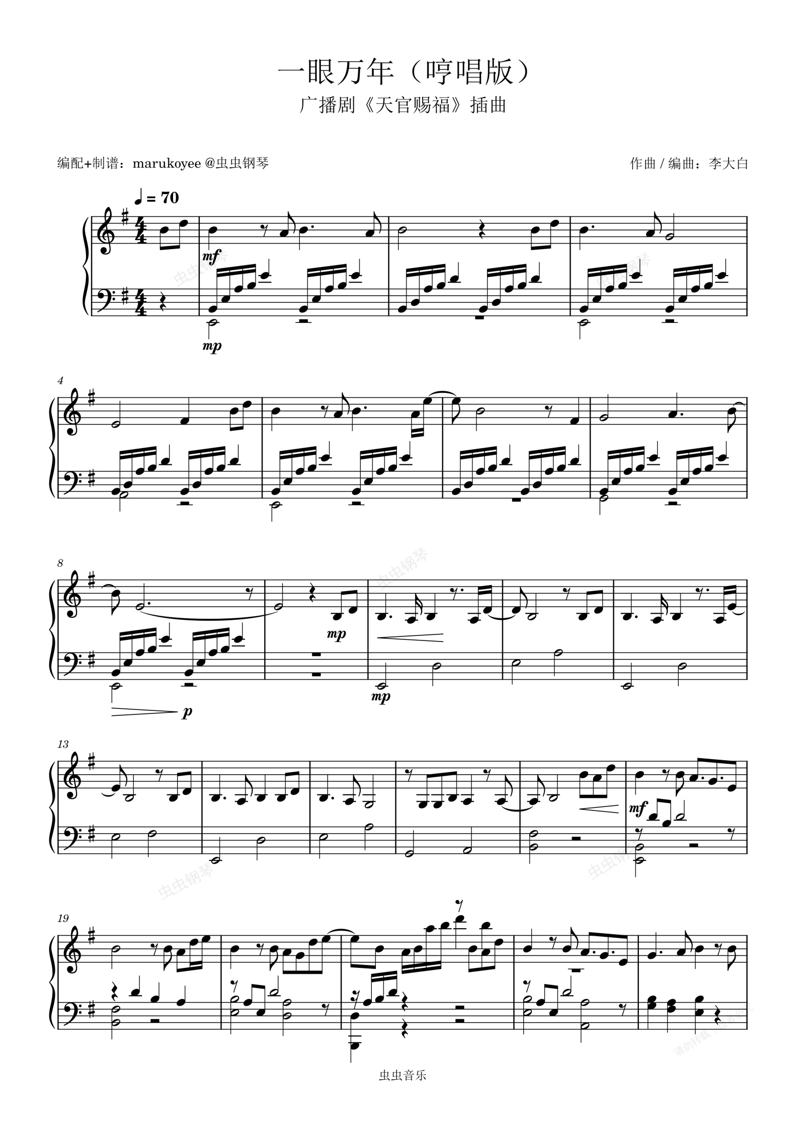 钢琴谱:【天官赐福广播剧】一眼万年(哼唱版)- 原调简易版