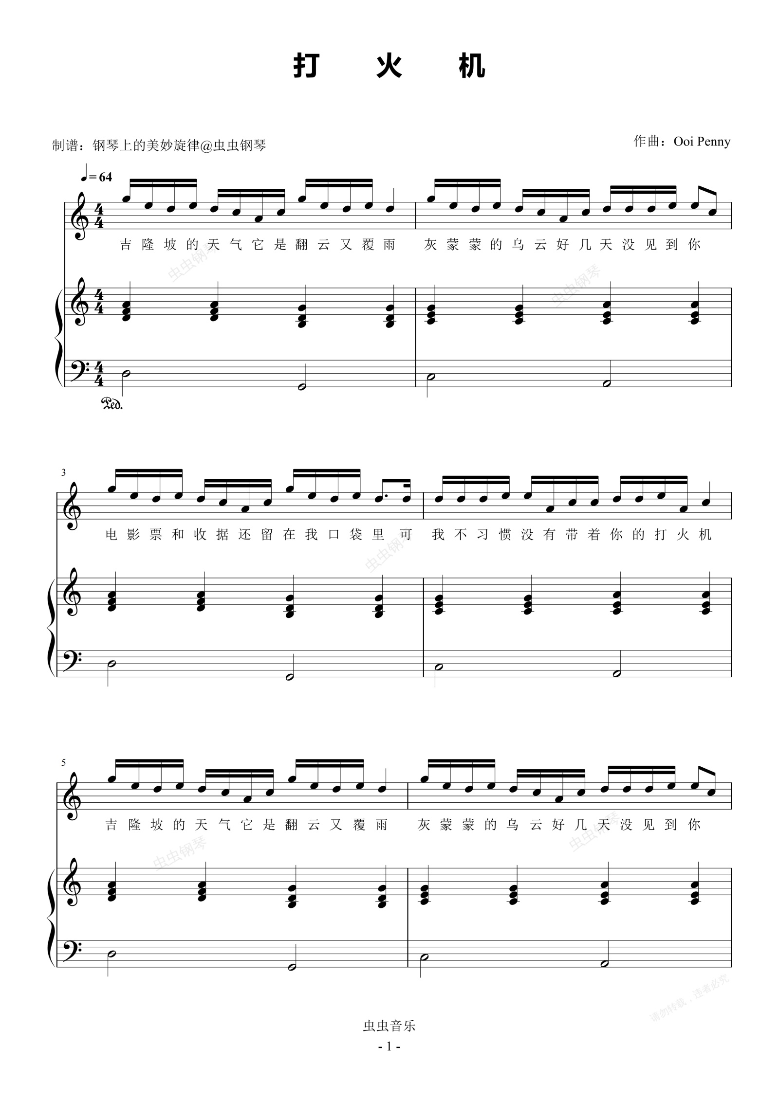 钢琴谱:打火机 C调简易钢琴弹唱伴奏 带歌词