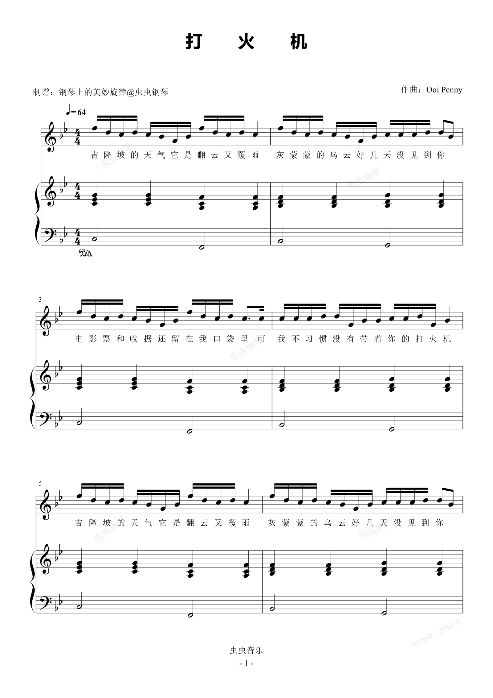 钢琴谱:打火机 原调简易钢琴弹唱伴奏 带歌词