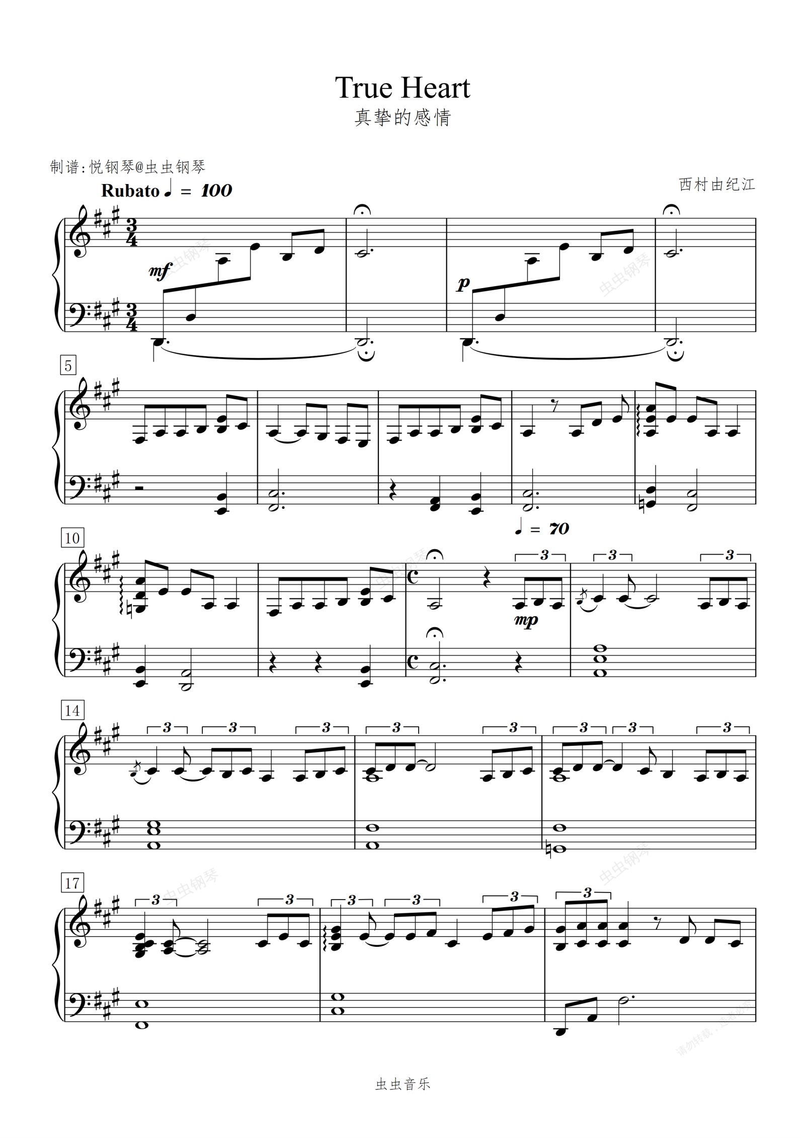 钢琴谱:真挚的感情/True Heart 【抒情】