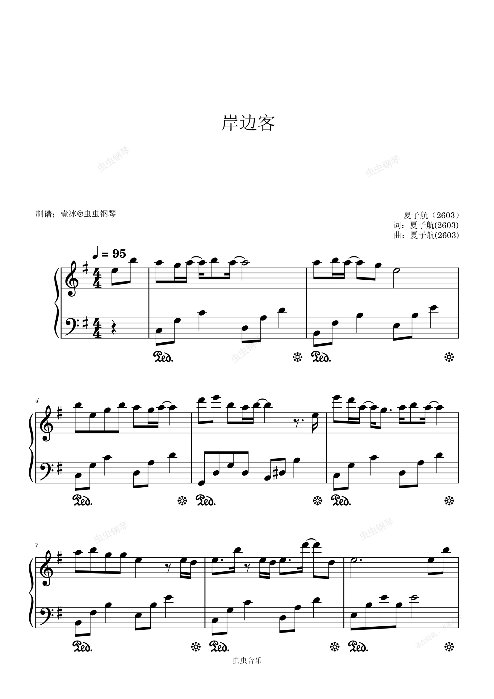 钢琴谱:岸边客 - 夏子航(2603) 原调