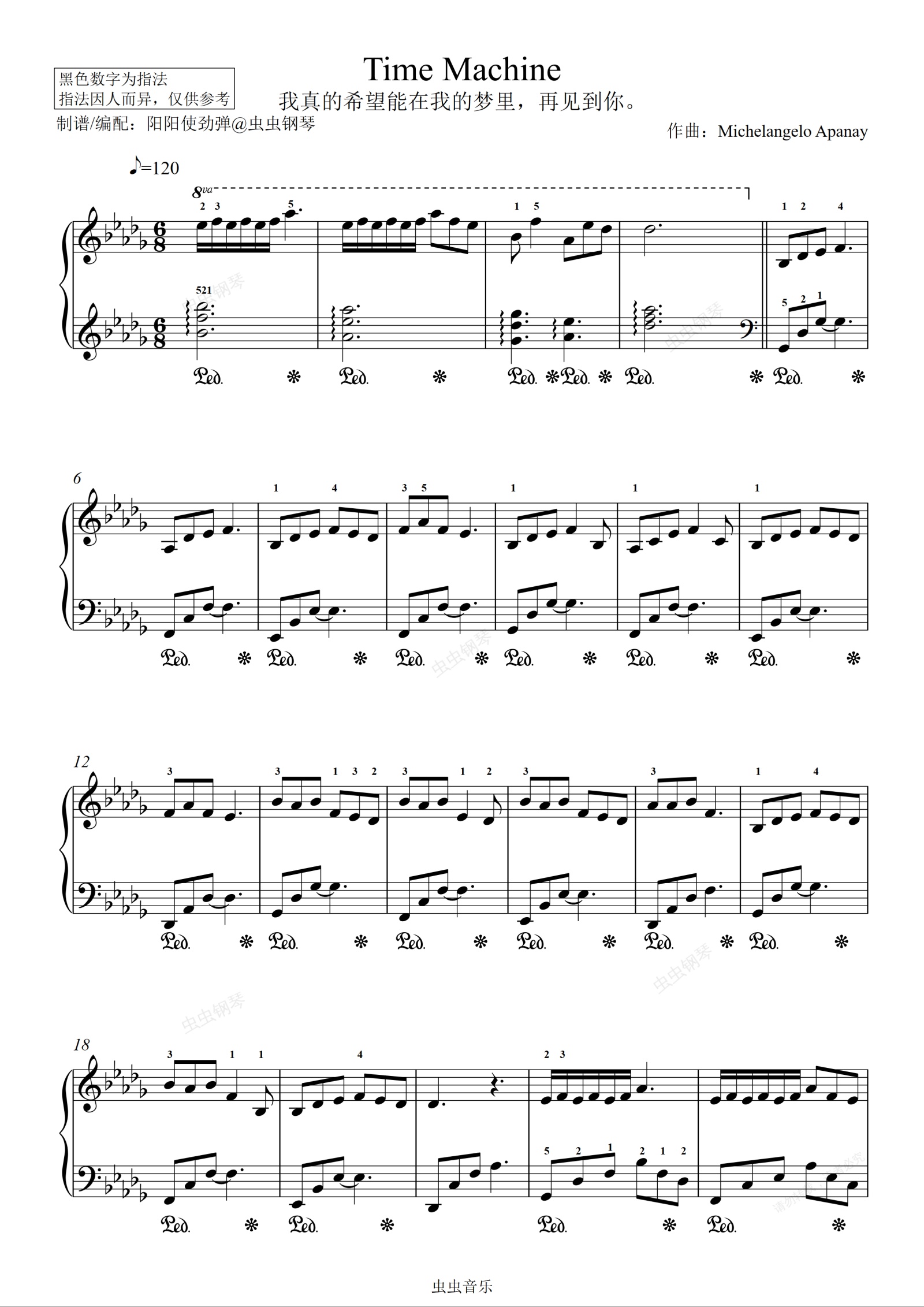 钢琴谱:Time Machine (原调精编指法版)