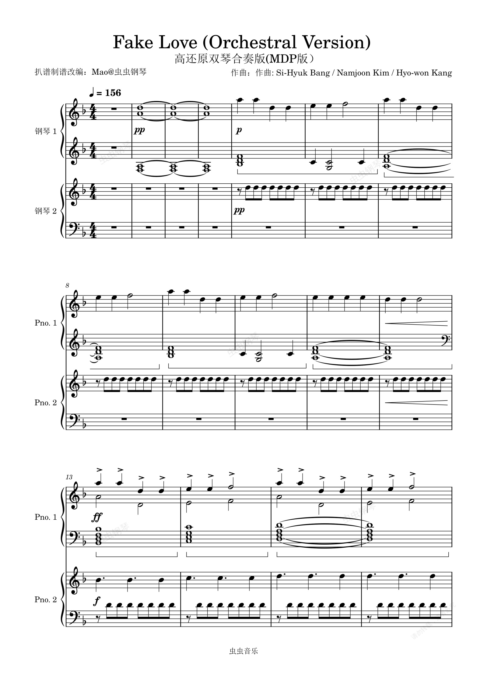 钢琴谱:Fake Love (Orchestral Version) MDP超高还原双琴合奏版