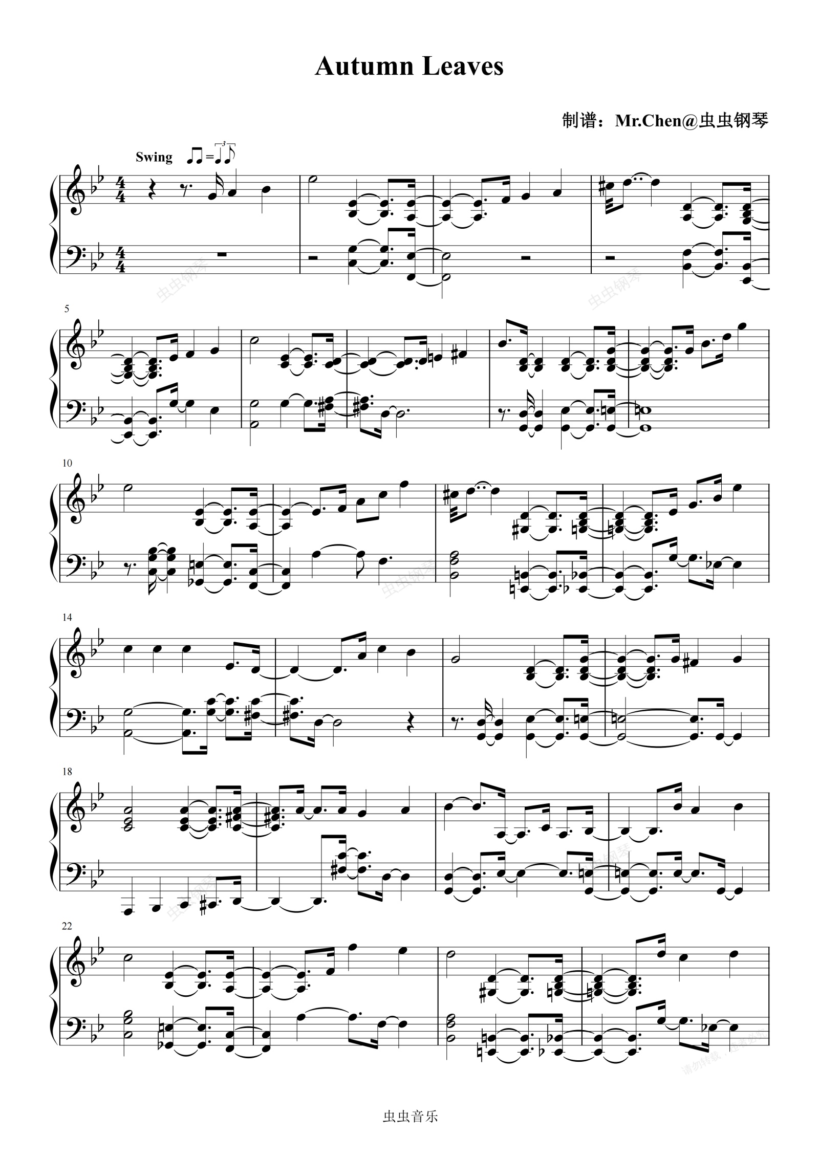 钢琴谱:Autumn Leaves -【秋叶】爵士钢琴曲