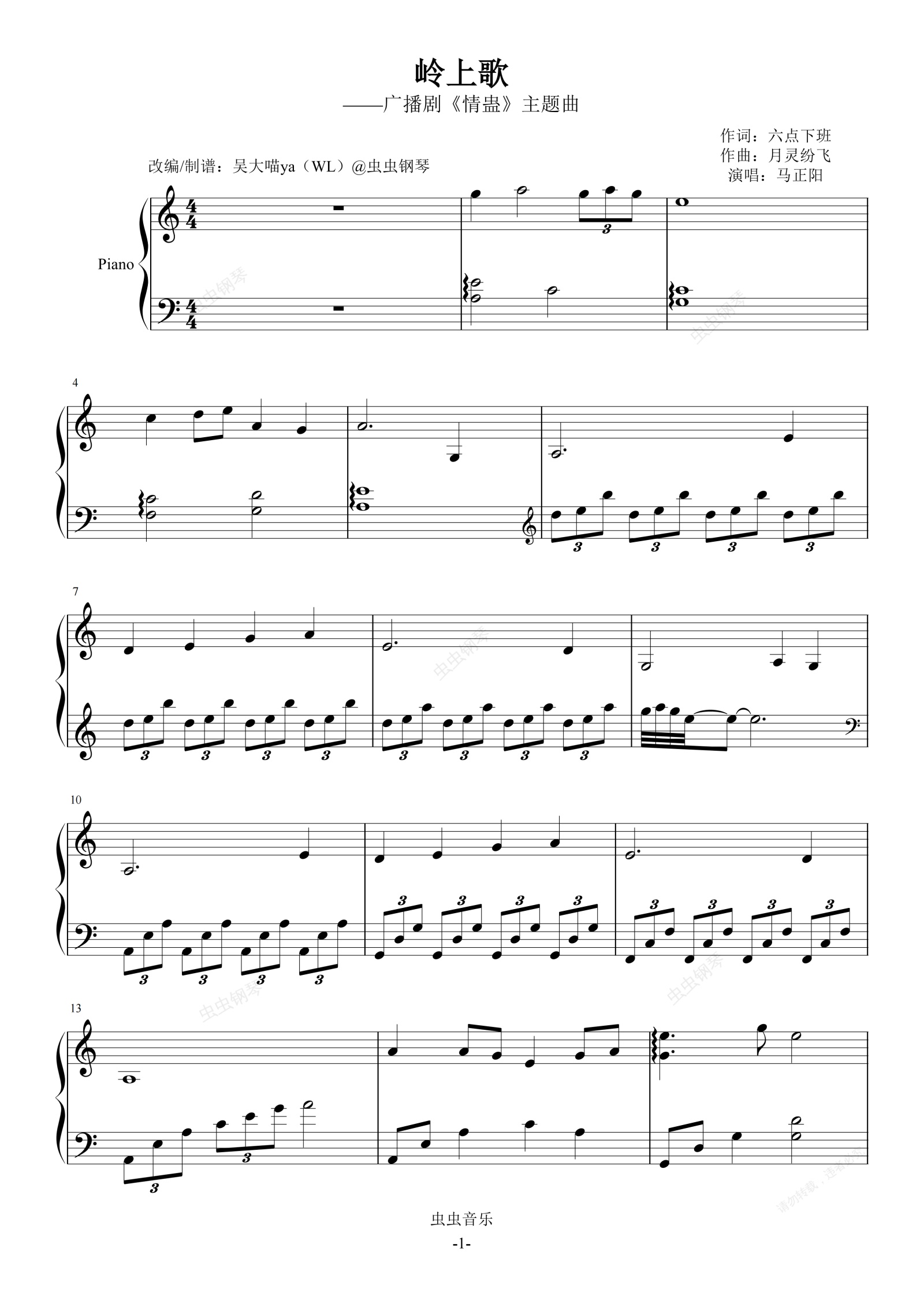 钢琴谱:岭上歌C调-广播剧《情蛊》主题曲 完整版