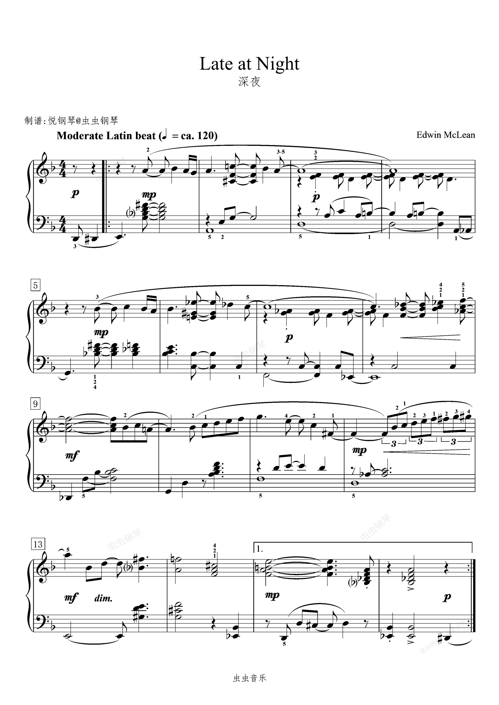 钢琴谱:深夜/Late at Night【爵士】