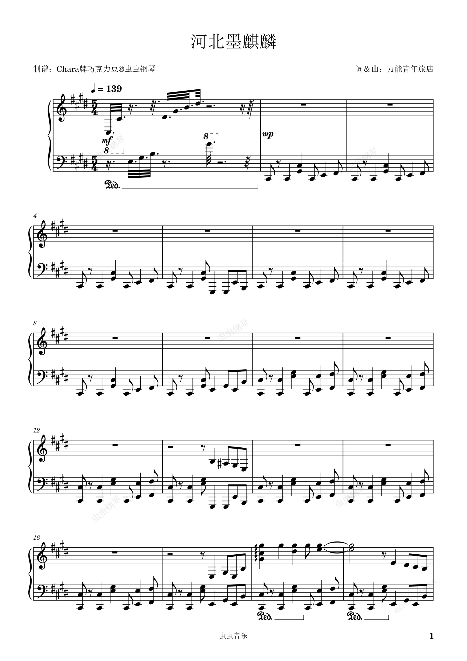 钢琴谱:河北墨麒麟 完美E调独奏钢琴谱
