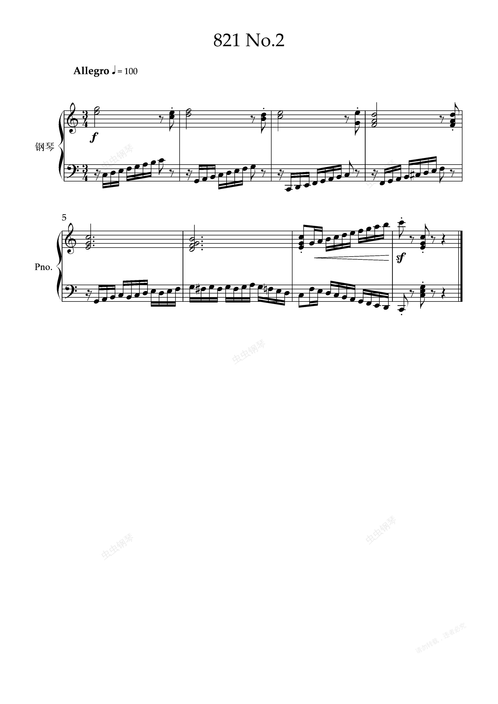 您的位置: 首页 > 钢琴谱库 > 821 No.2钢琴谱-车尔尼-车尔尼160首八小节钢琴练习曲