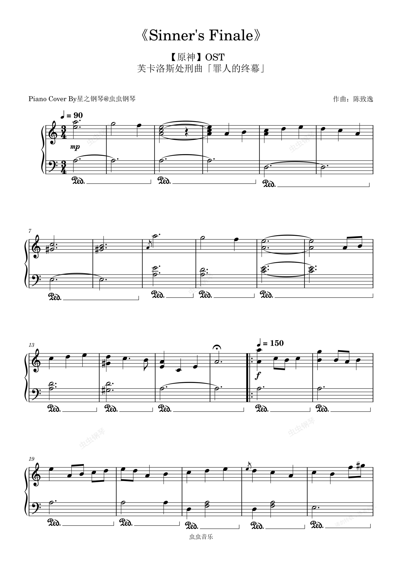 钢琴谱:【原神】芙卡洛斯处刑曲《Sinner's Finale》钢琴独奏版~星之钢琴~