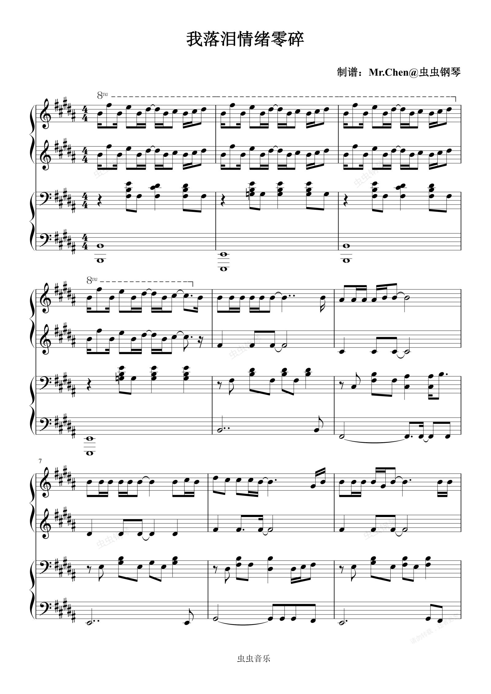 钢琴谱:我落泪情绪零碎 (四手联弹)- 周杰伦