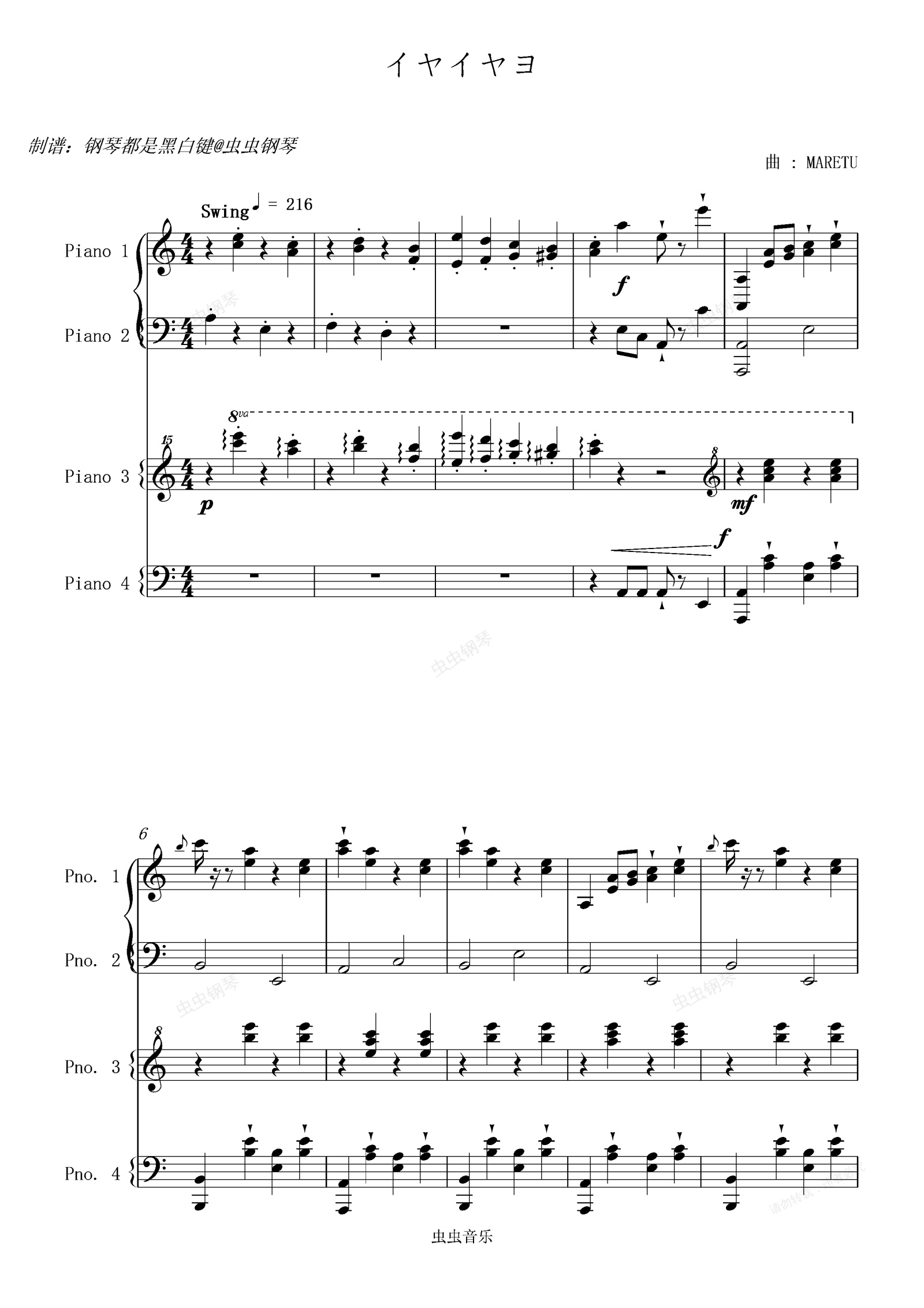 钢琴谱:【初音ミク】讨厌讨厌呀/イヤイヤヨ