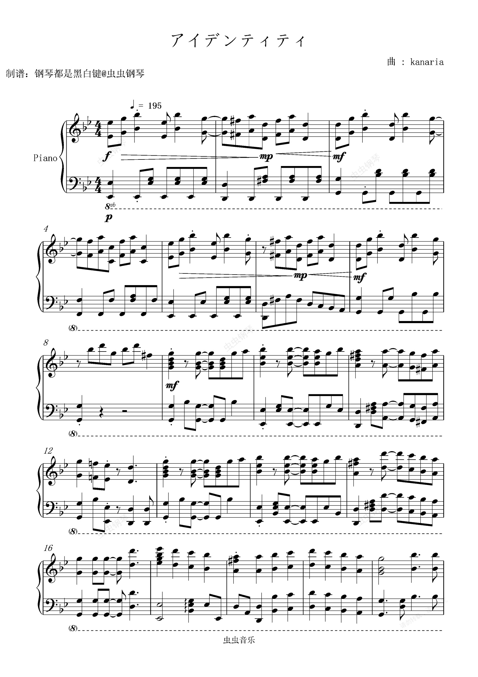 钢琴谱:【初音ミク】アイデンティティ/Identity【日清杯面 × 『世界计划 多彩舞台』联动曲】