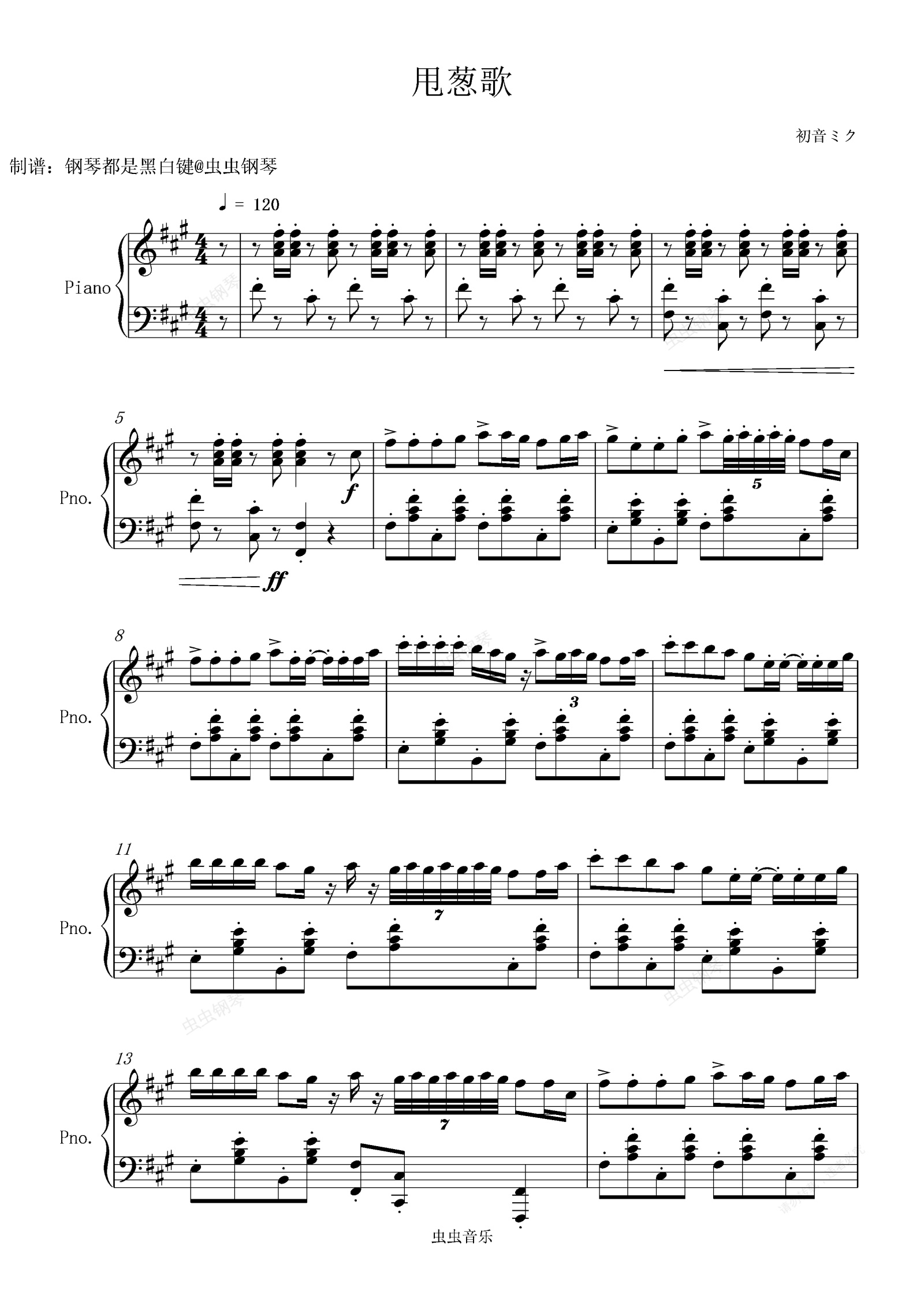 钢琴谱:【初音ミク】甩葱歌(欢快技巧版)