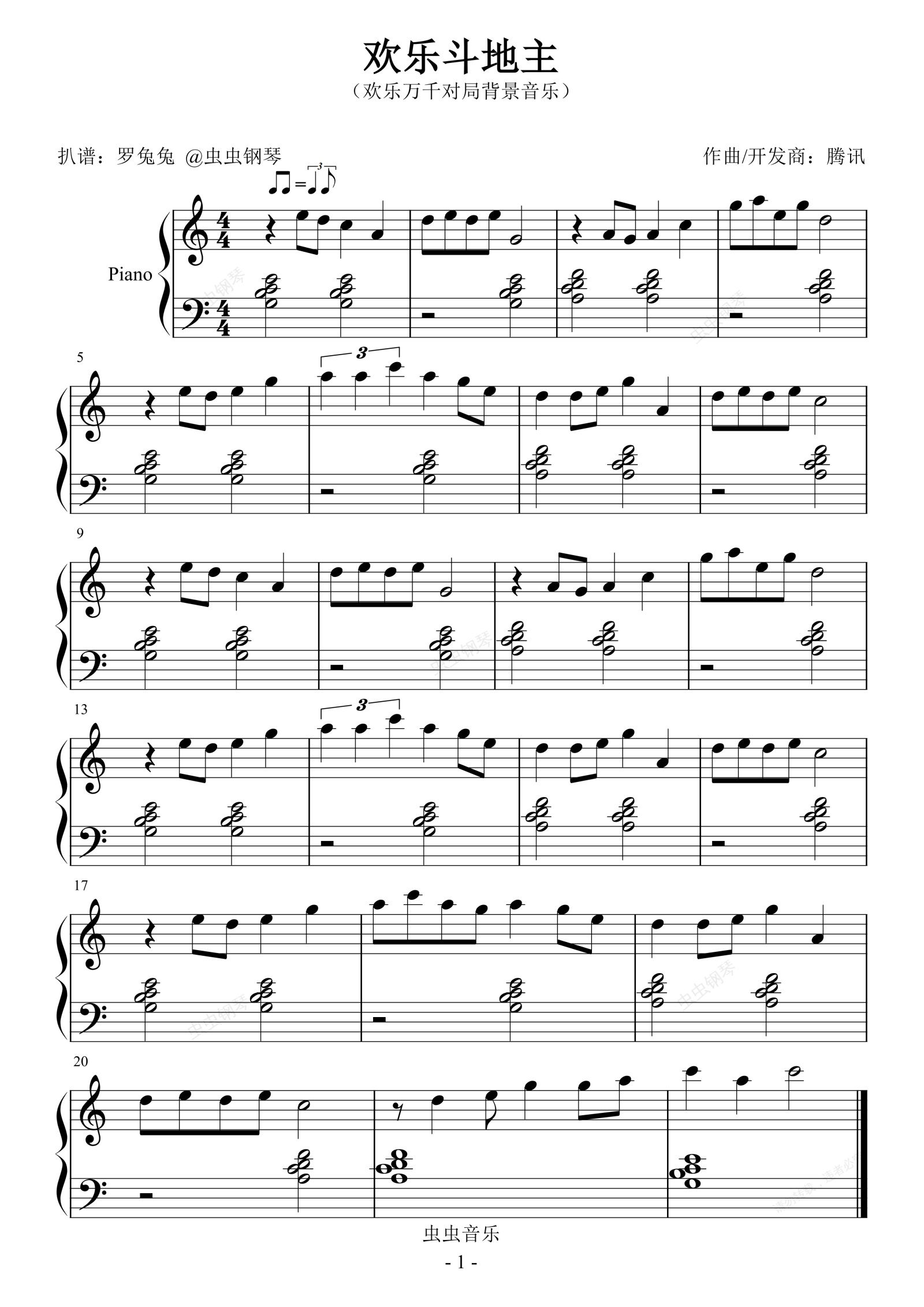 钢琴谱:欢乐斗地主(欢乐万千对局背景音乐)