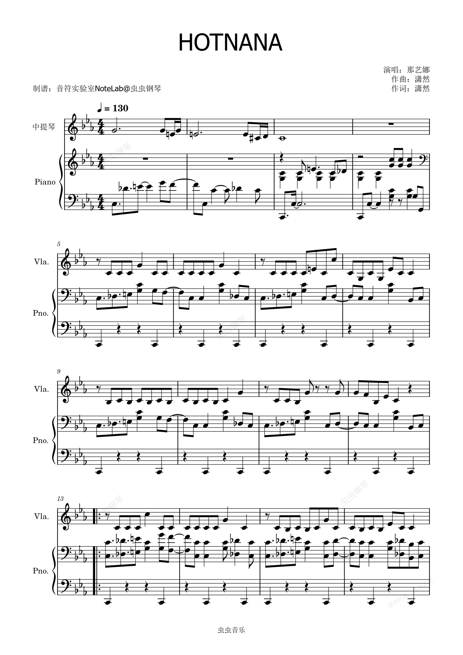 钢琴谱:【弹唱版】HOTNANA-那艺娜
