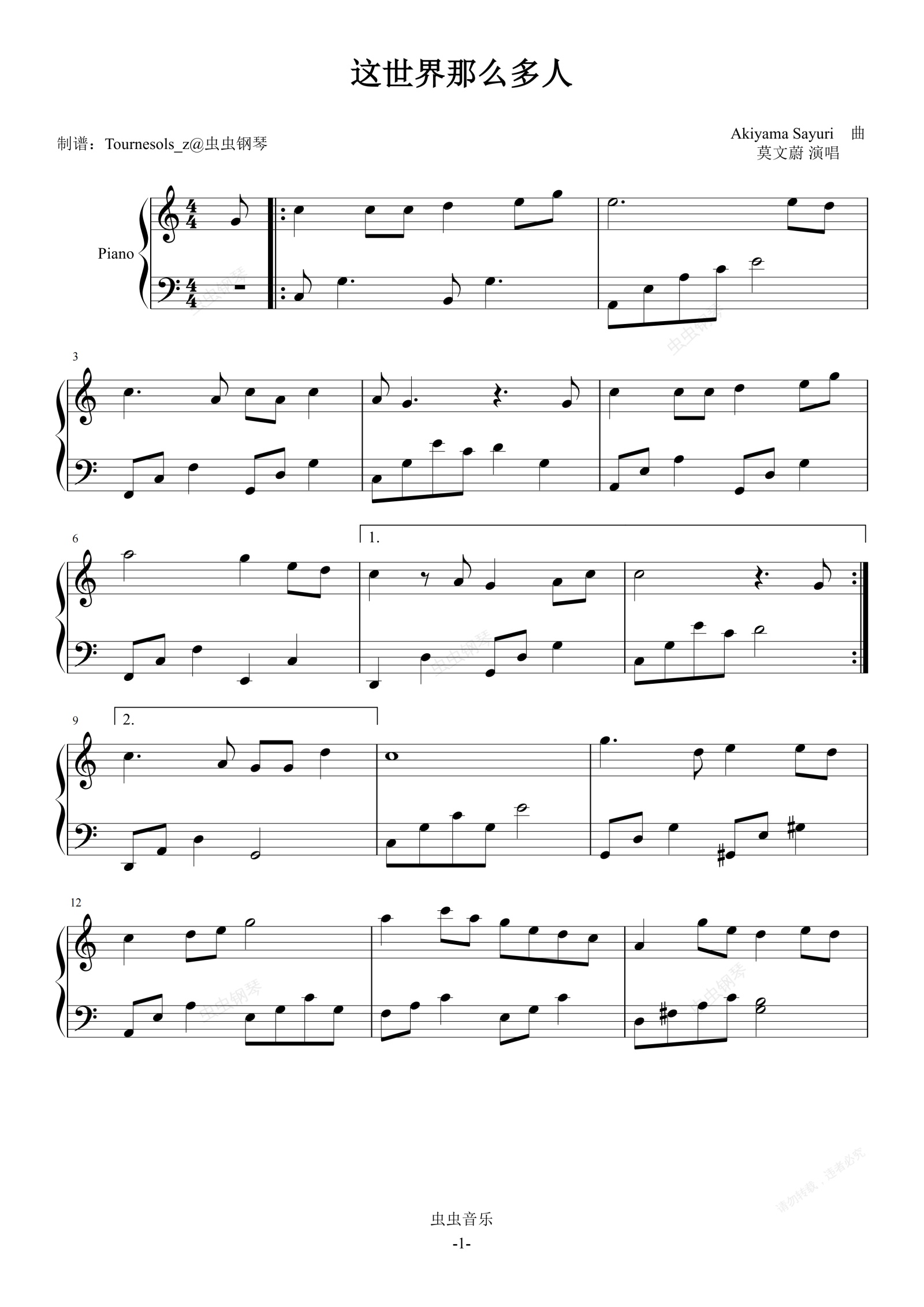 钢琴谱:这世界那么多人(C调,简单易弹)