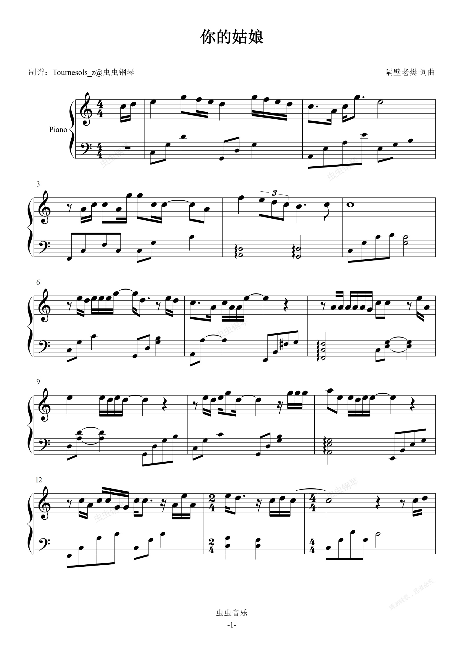 您的位置: 首页 > 钢琴谱库 > 你的姑娘钢琴谱-隔壁老樊