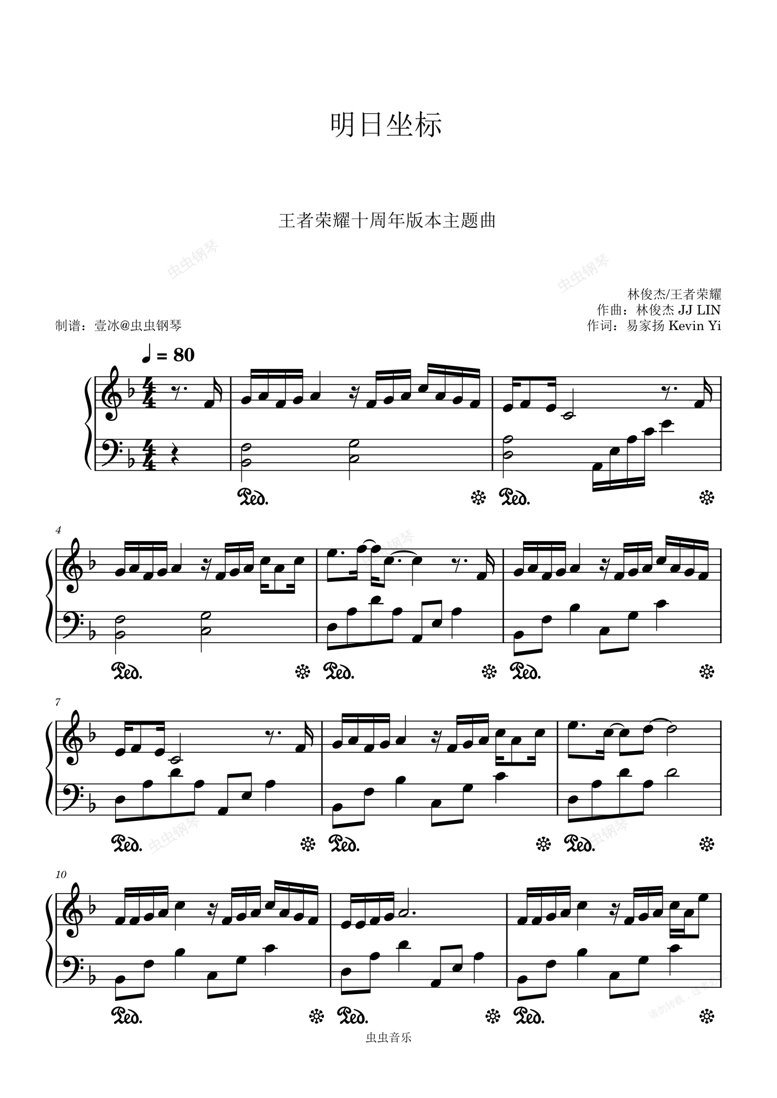钢琴谱:明日坐标 (王者荣耀十周年版本主题曲) - 原调