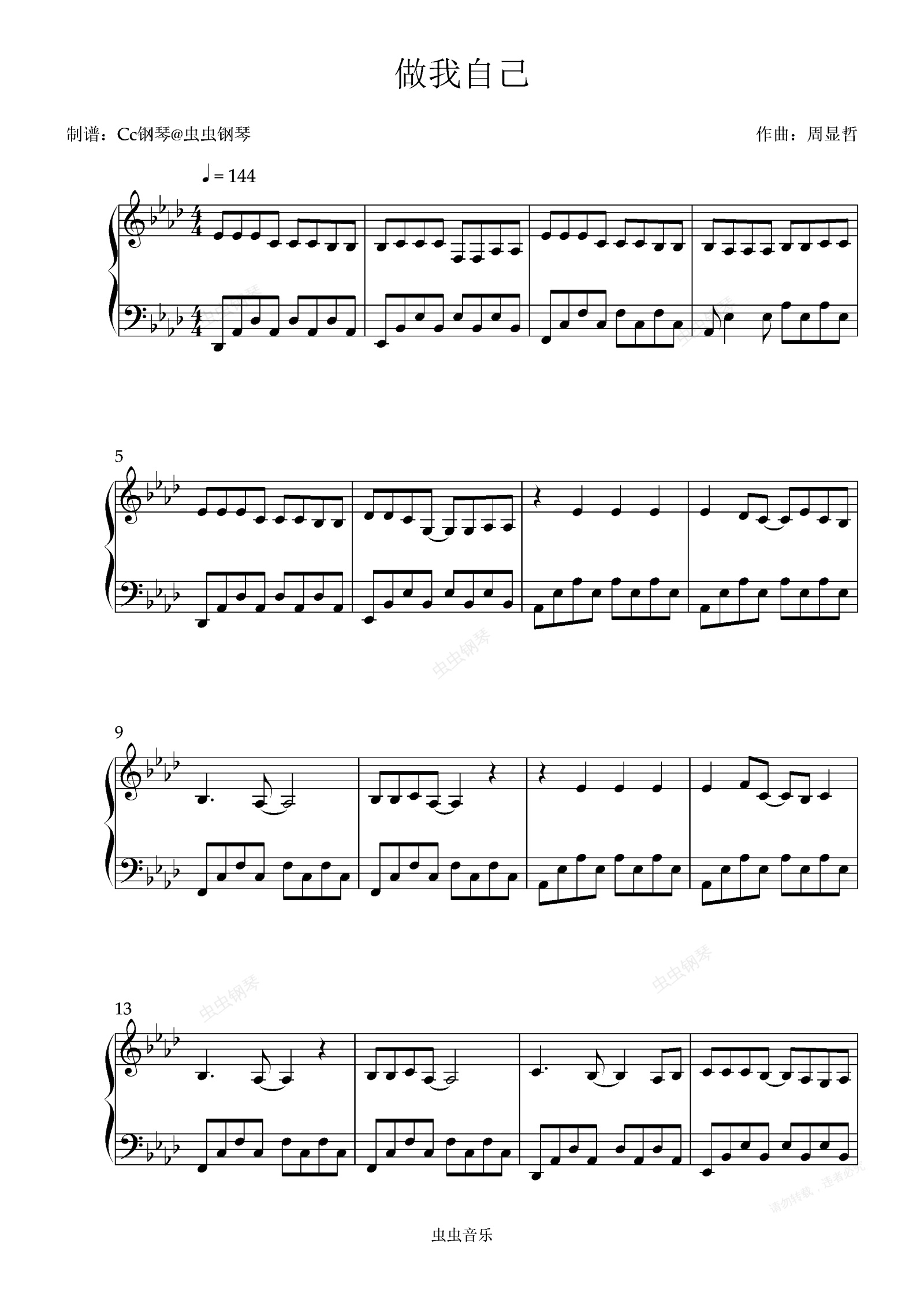 钢琴谱:做我自己 原调 好听易上手