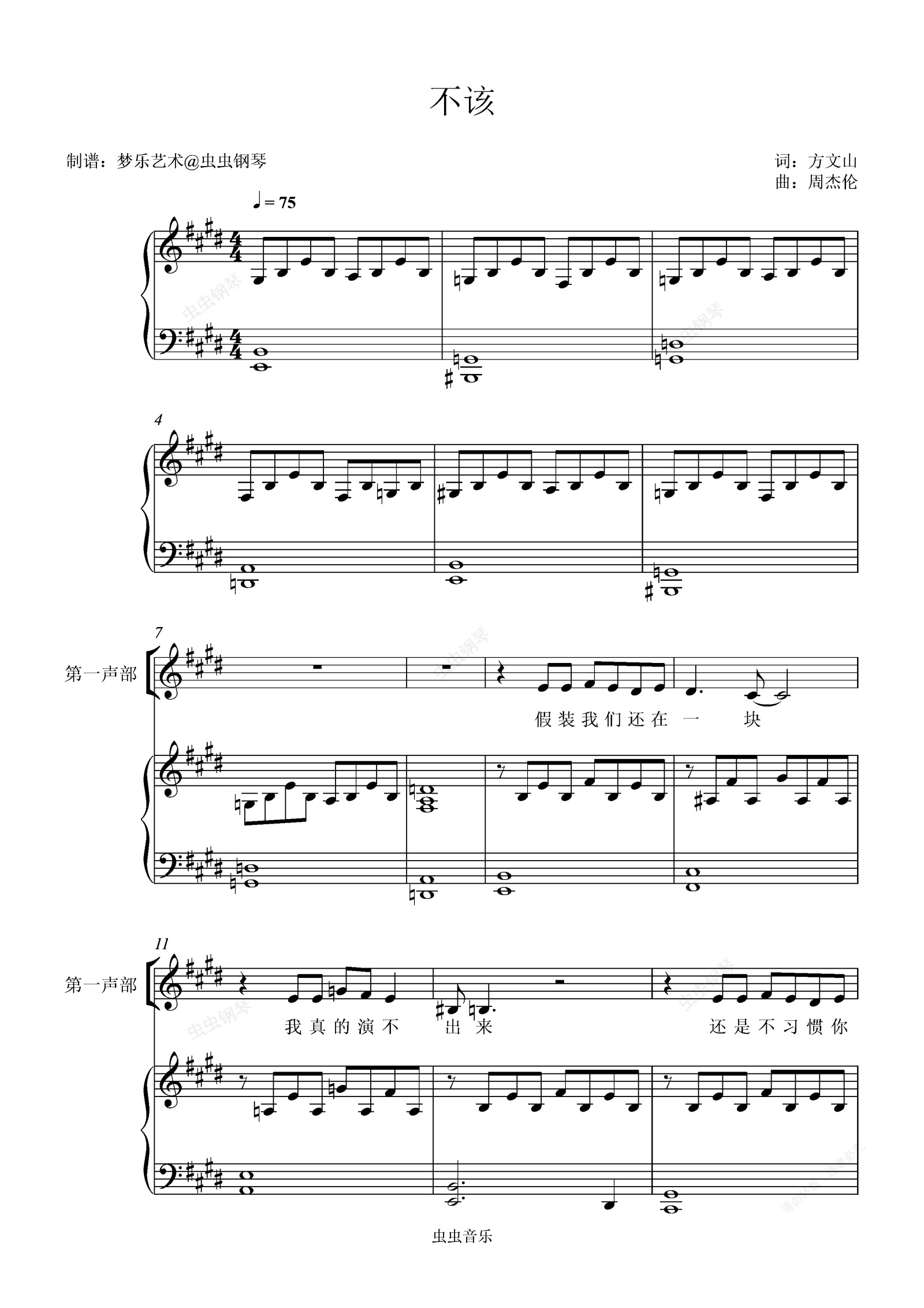 钢琴谱:《不该》周杰伦/张惠妹 和弦弹唱版