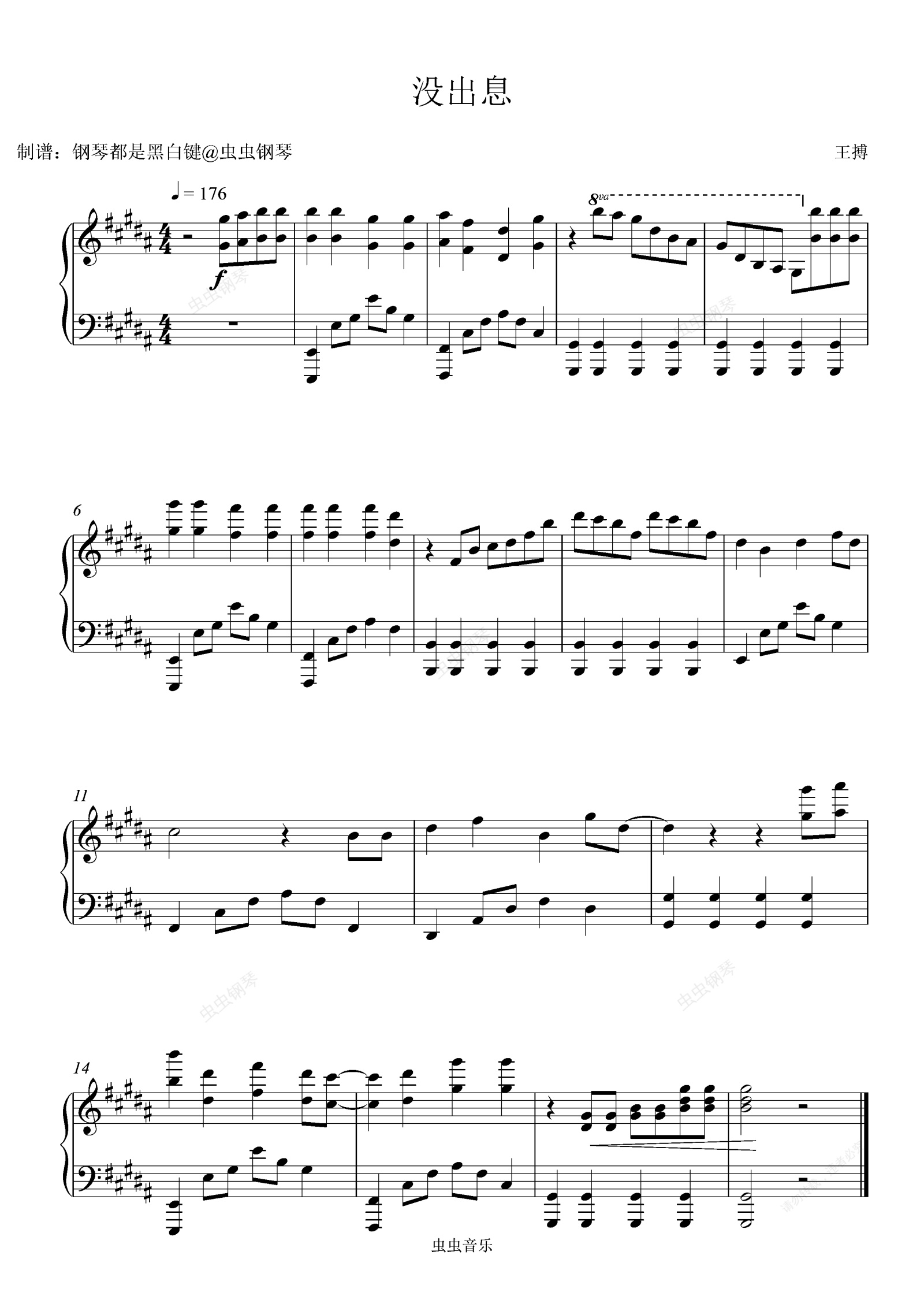 钢琴谱:没出息 - 王搏[爆燃演奏版]