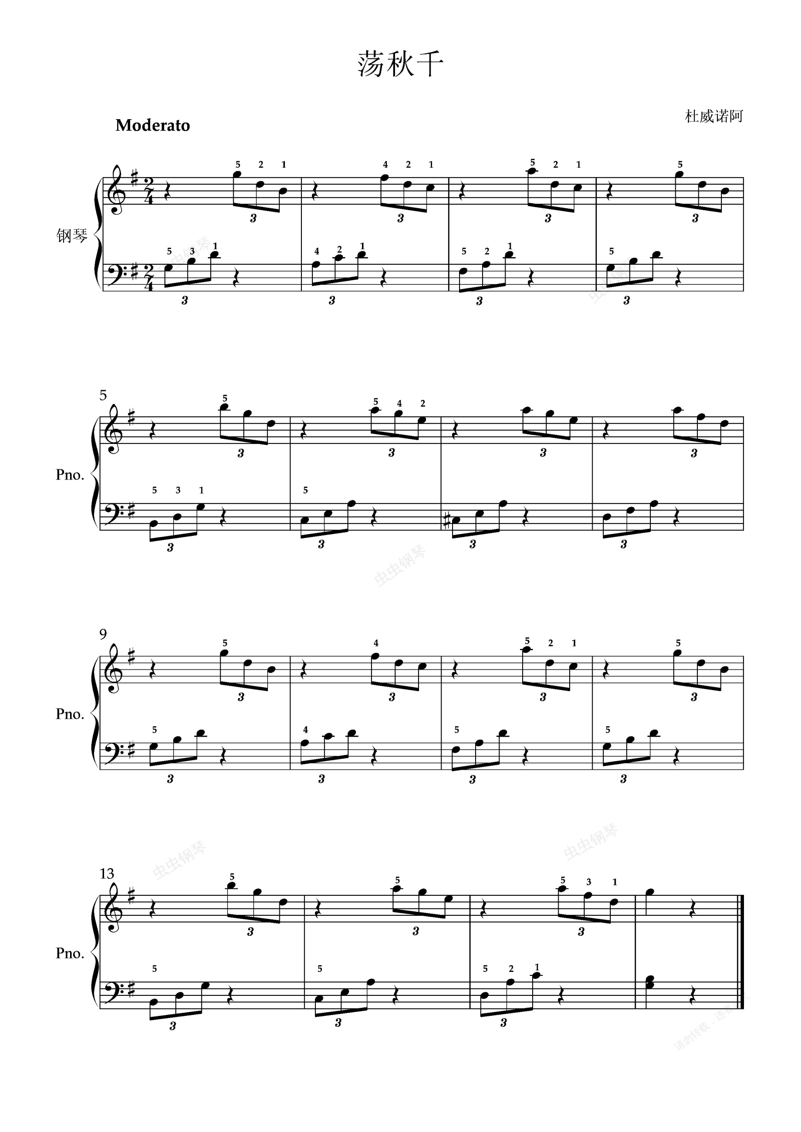 您的位置: 首页 > 钢琴谱库 > 荡秋千钢琴谱-杜威诺阿-趣味钢琴技巧(初级A)