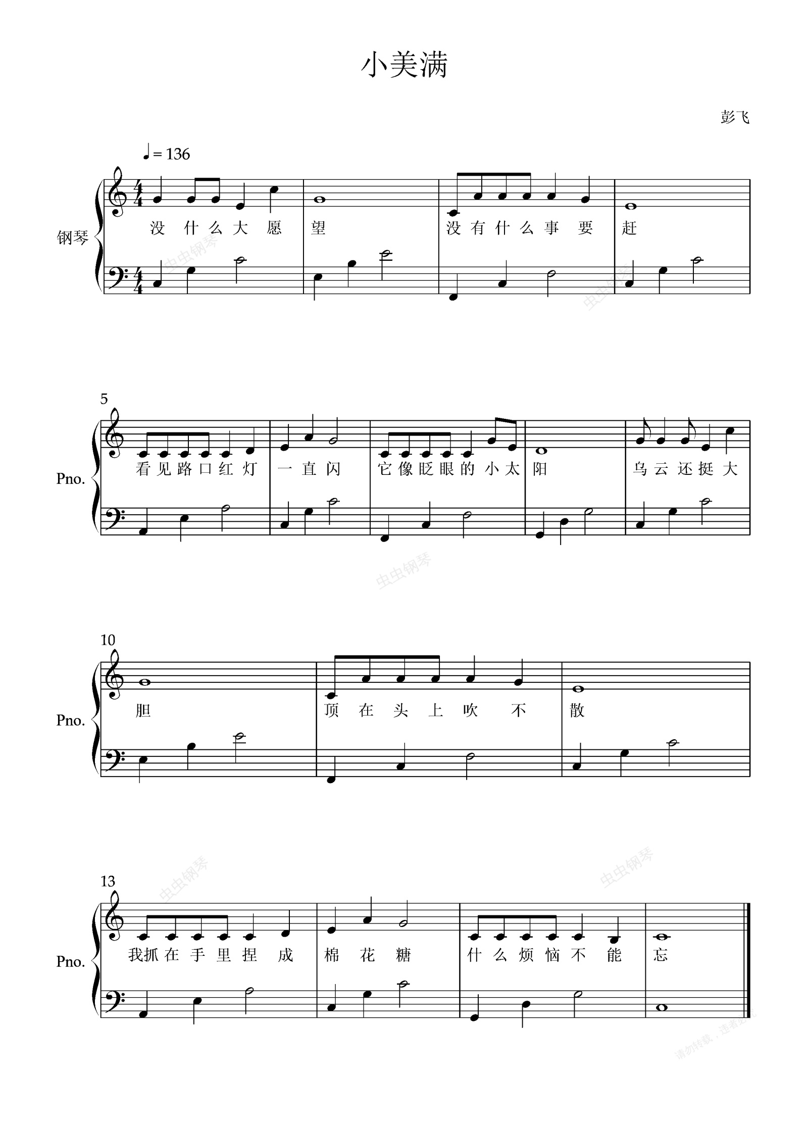 您的位置: 首页 > 钢琴谱库 > 小美满钢琴谱简易版-彭飞-流行音乐合集