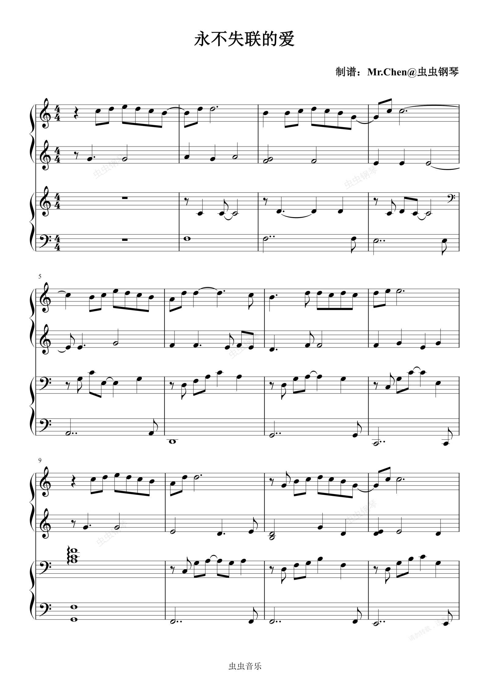 钢琴谱:永不失联的爱 (四手联弹)C调 - 单依纯