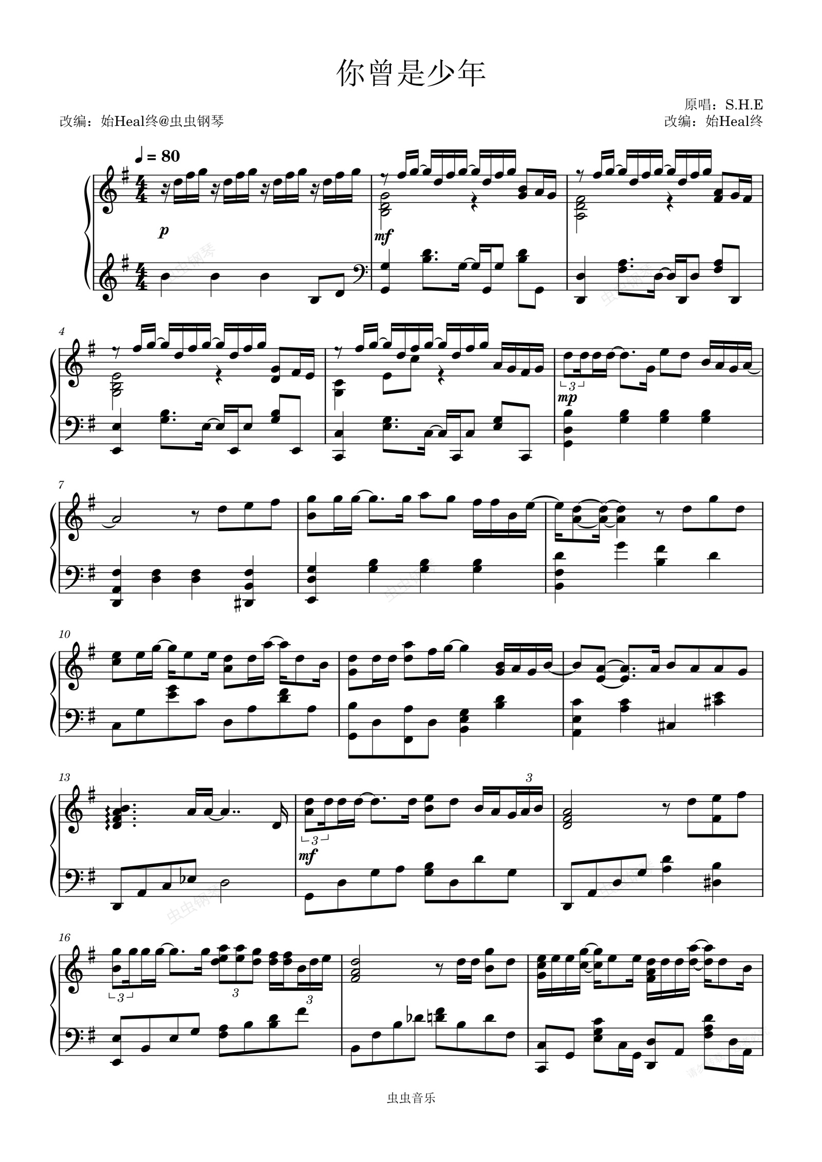 钢琴谱:你曾是少年 钢琴版