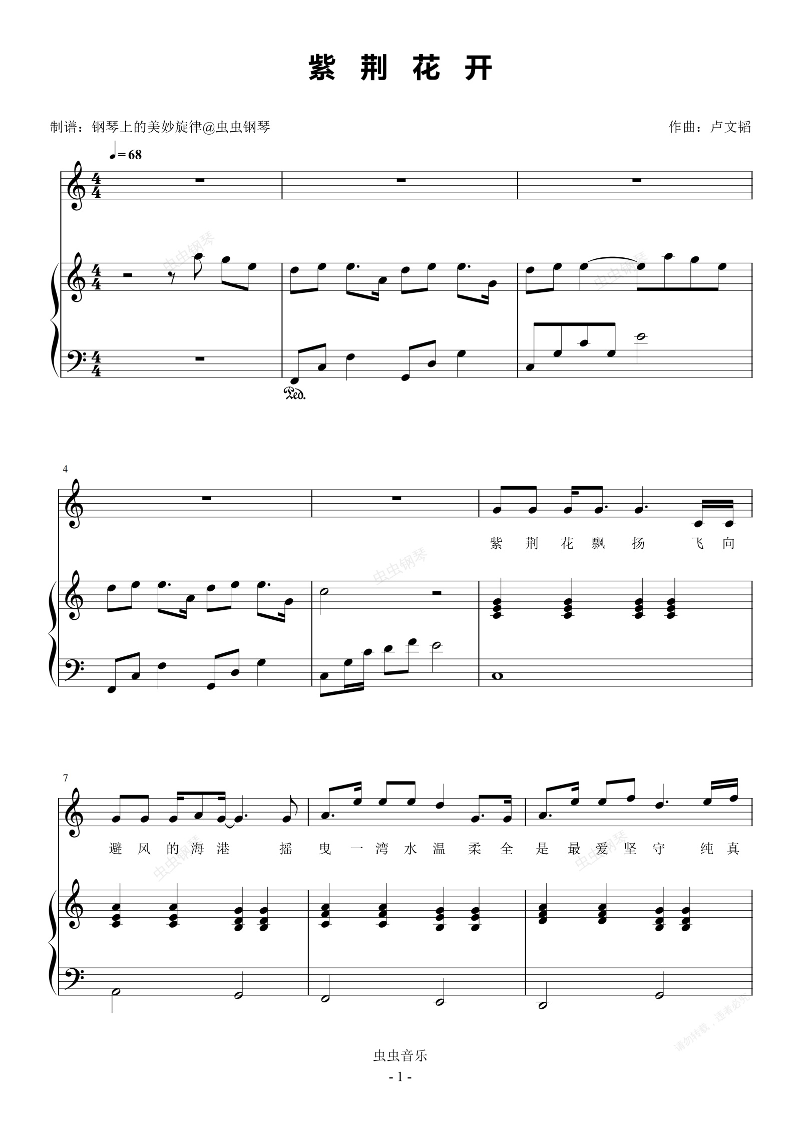 钢琴谱:紫荆花盛开 C调简易钢琴弹唱伴奏 带歌词 李荣浩/梁咏琪