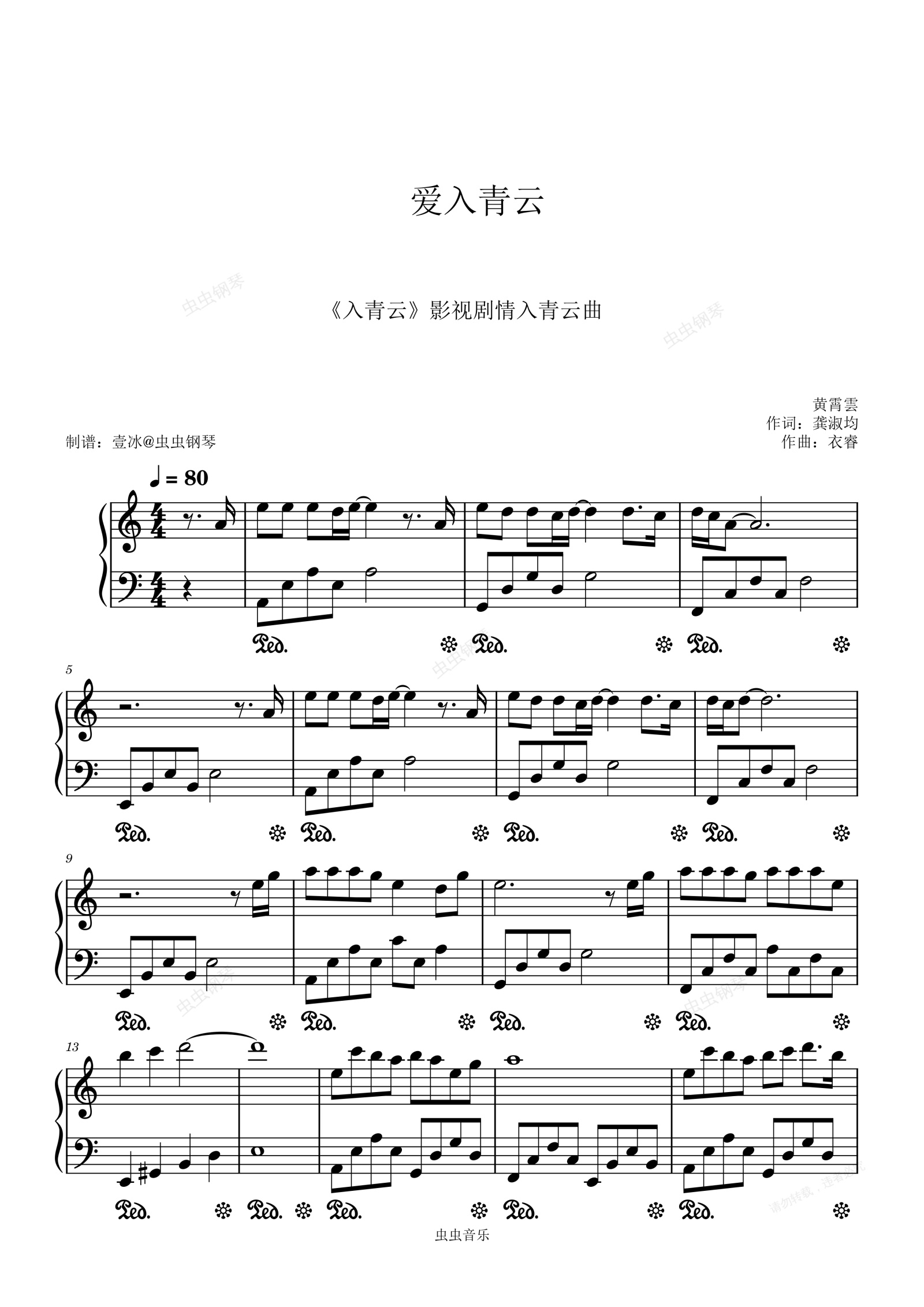 钢琴谱:爱入青云 (《入青云》影视剧情入青云曲) - C调