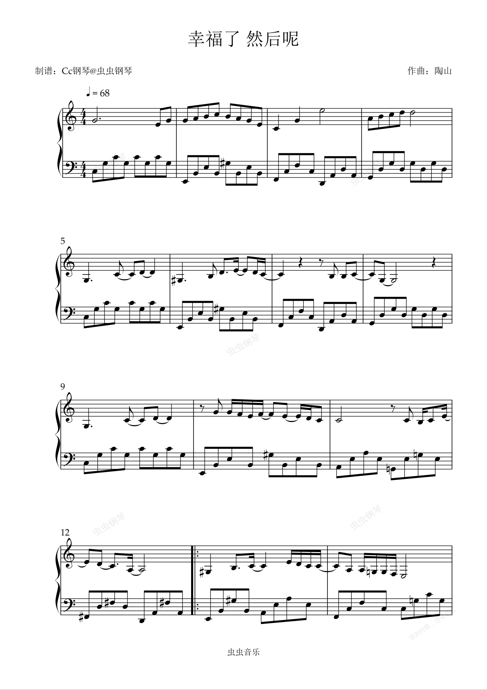 钢琴谱:幸福了 然后呢 C调 好听易上手