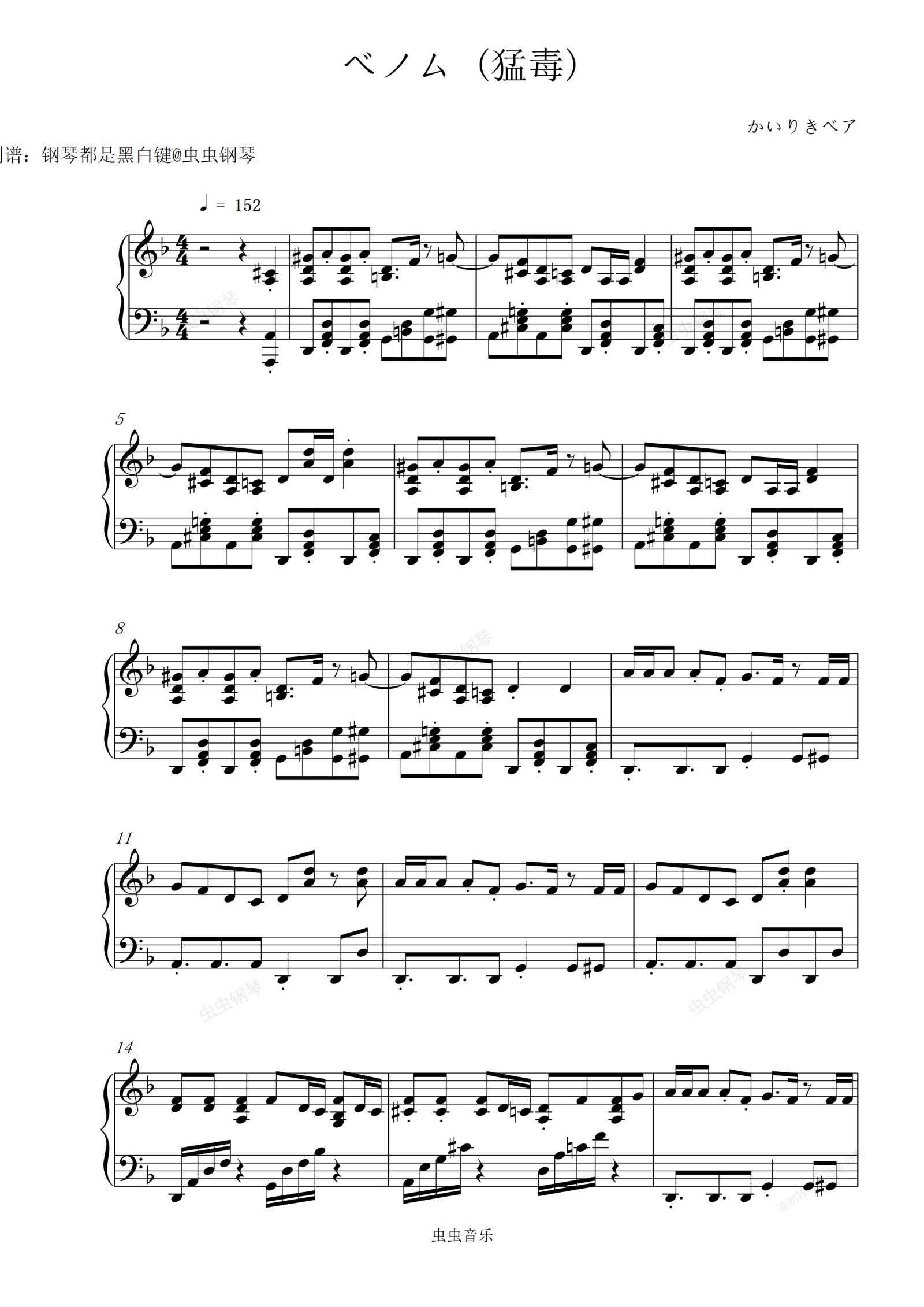 钢琴谱:ベノム(猛毒)【『世界计划 多彩舞台』收录曲 2022年愚人节 ver.】