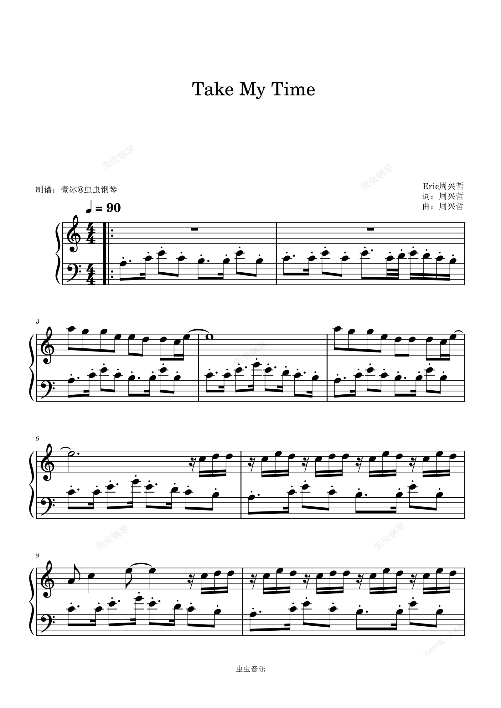 钢琴谱:Take My Time //《许我耀眼》插曲- Eric周兴哲 C调