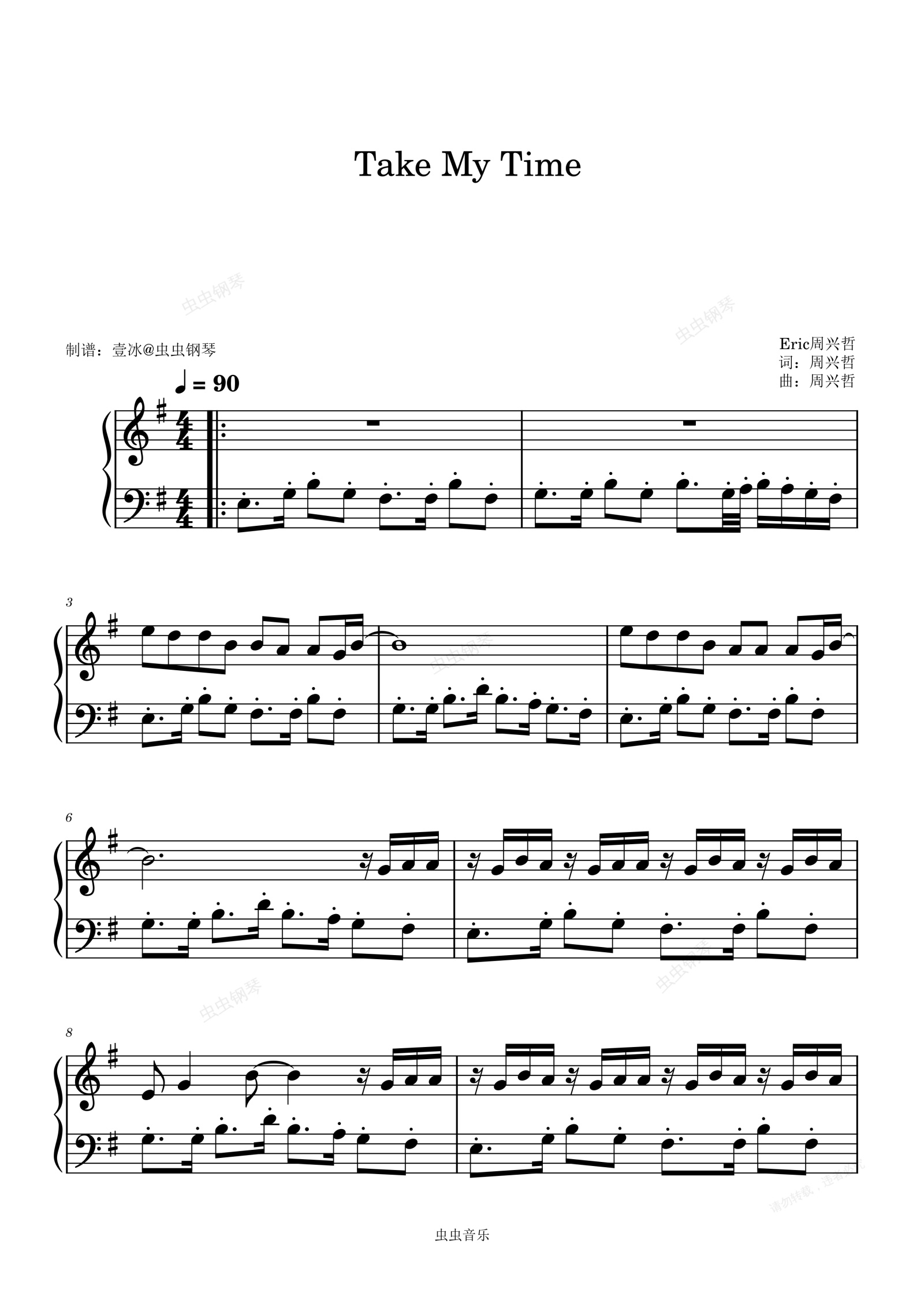 钢琴谱:Take My Time //《许我耀眼》插曲- Eric周兴哲 原调