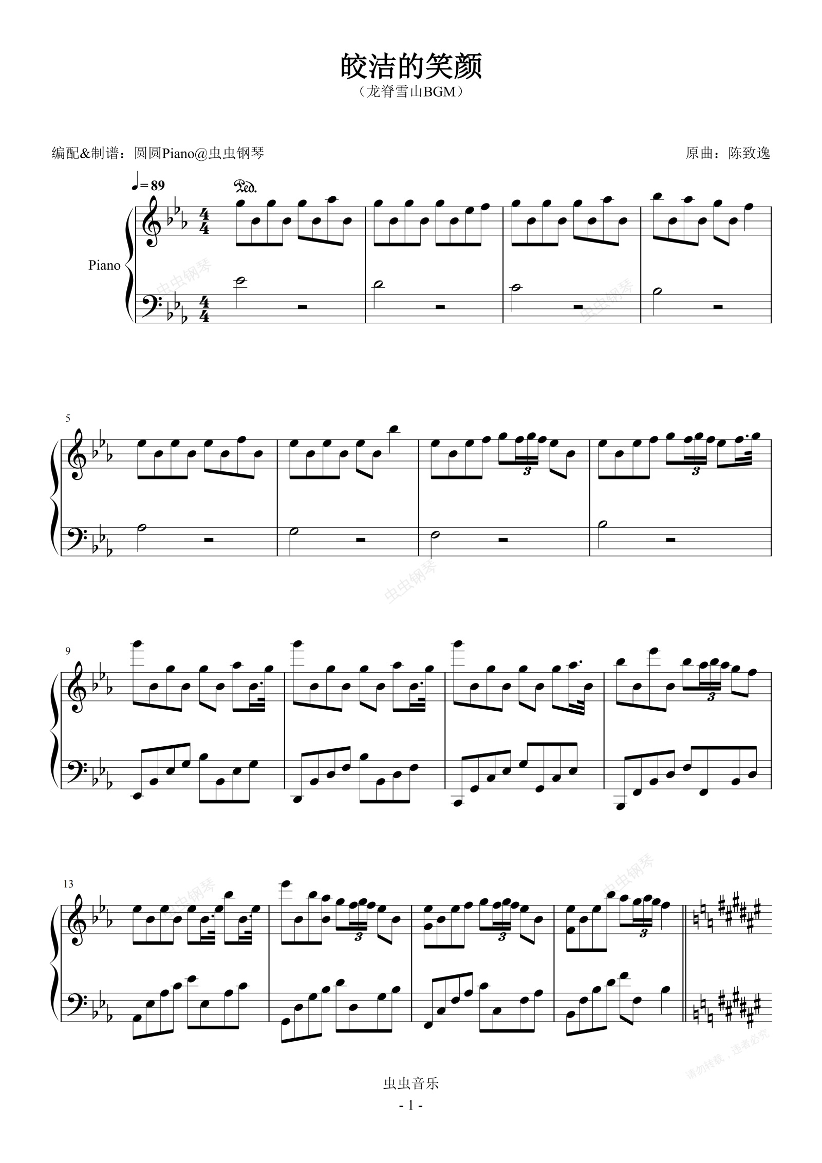 钢琴谱:原神 皎洁的笑颜 龙脊雪山 BGM 简易编配版 原调
