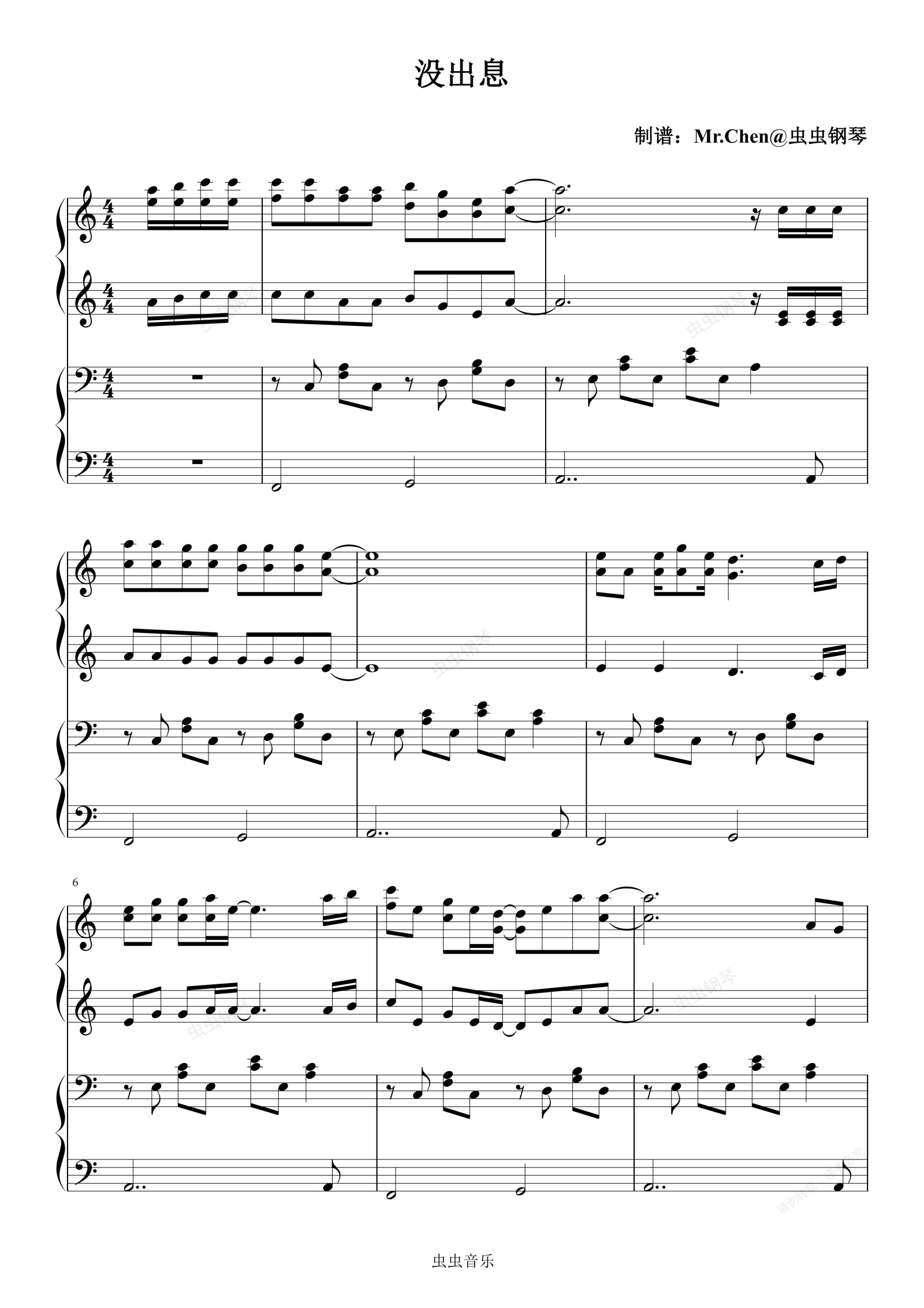钢琴谱:没出息 (四手联弹)C调 - 王搏