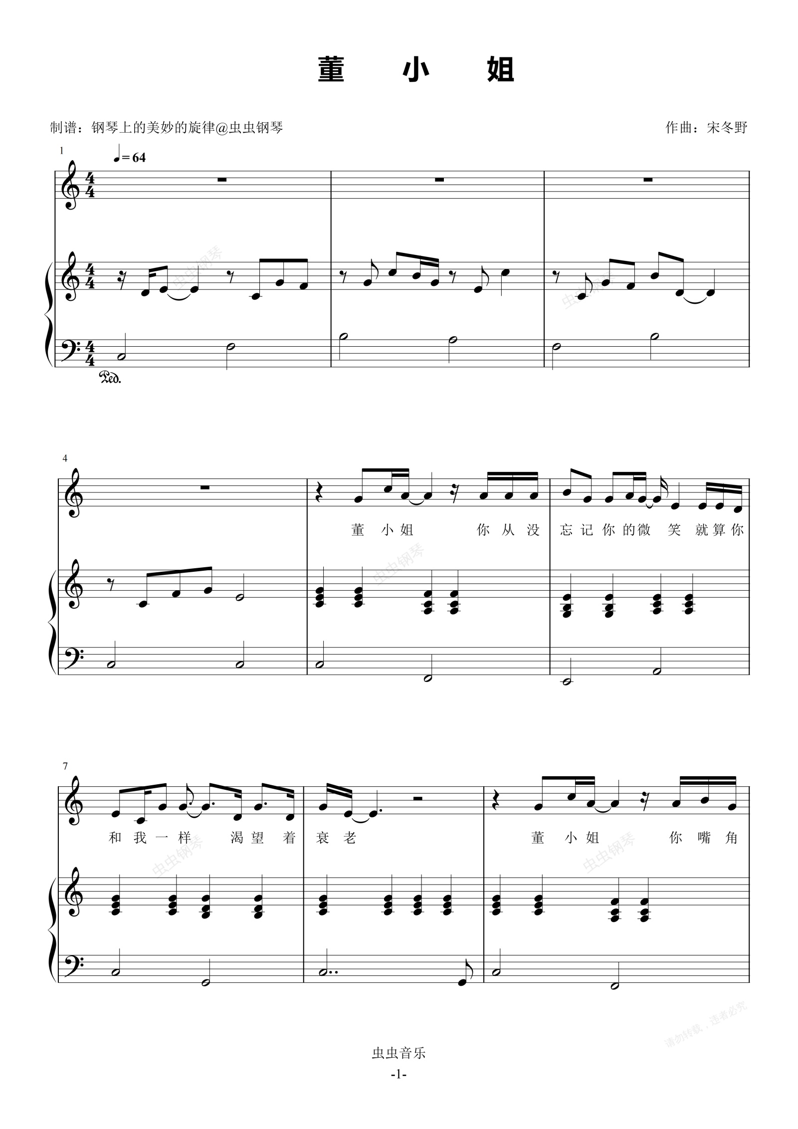 钢琴谱:董小姐 C调简易钢琴弹唱伴奏 带歌词 流行经典