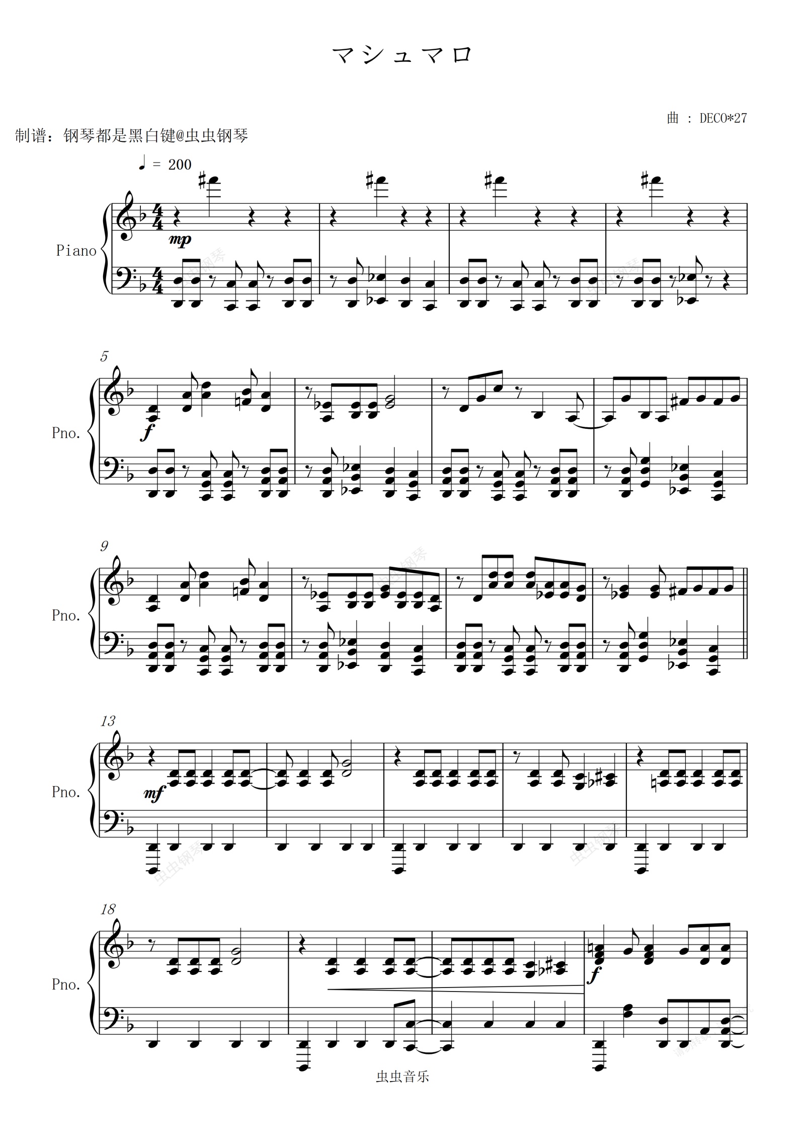 钢琴谱:【DECO*27新曲】棉花糖/マシュマロ
